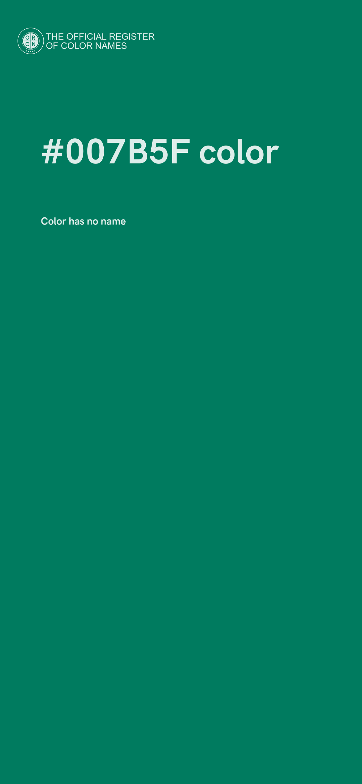 The digital color HEX #007B5F belongs to the Cyan Color Family featuring Full Saturation (Saturation Family) and Dark (Brightness Family).