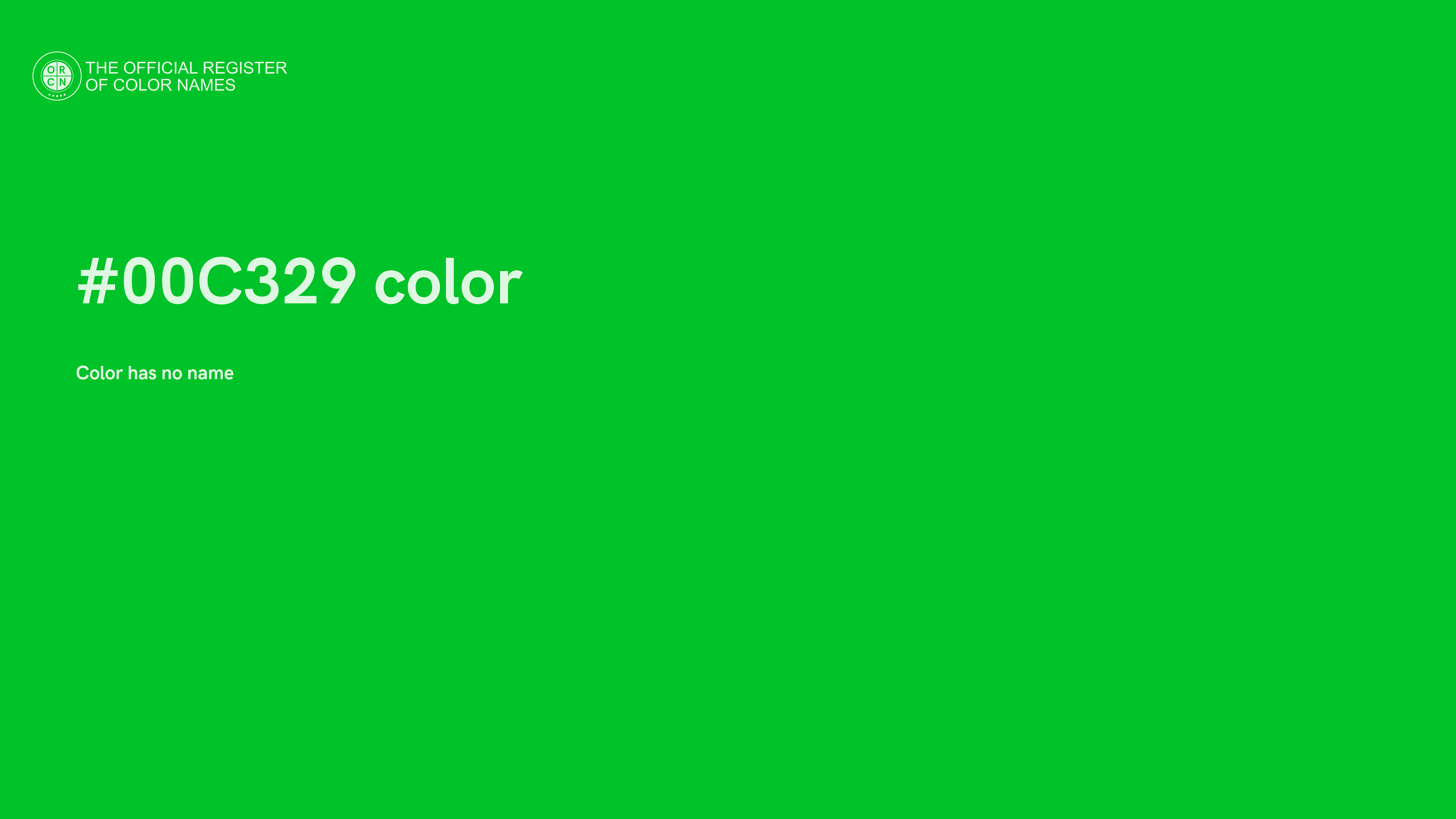 The digital color HEX #00C329 belongs to the Green Color Family featuring Full Saturation (Saturation Family) and Neutral (Brightness Family).