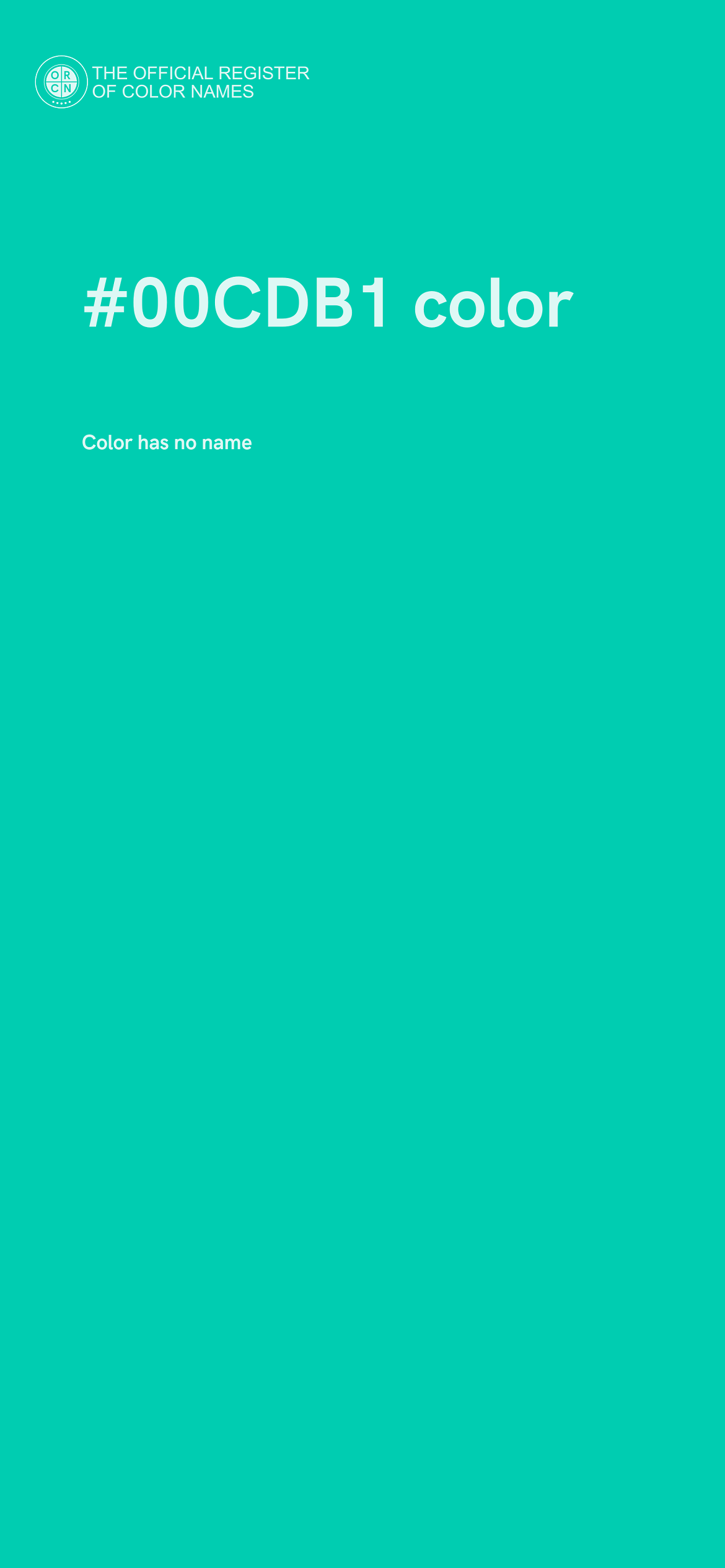 The digital color HEX #00CDB1 belongs to the Cyan Color Family featuring Full Saturation (Saturation Family) and Light (Brightness Family).