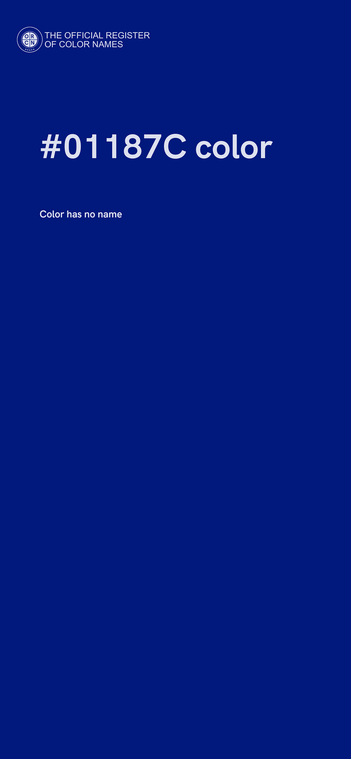 For printing in non digital world, #01187C is represented in CMYK as 48 Cyan, 39 Magenta, 0 Yellow, and 51 Black (Key) (C:48 M:39 Y:0 K:51).