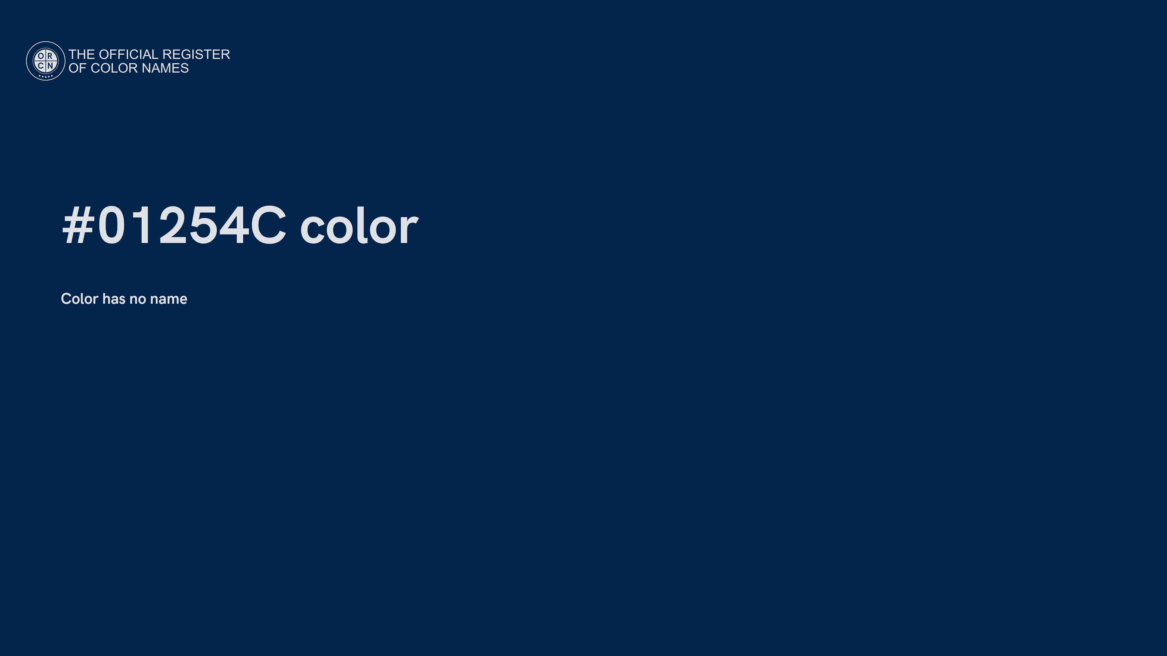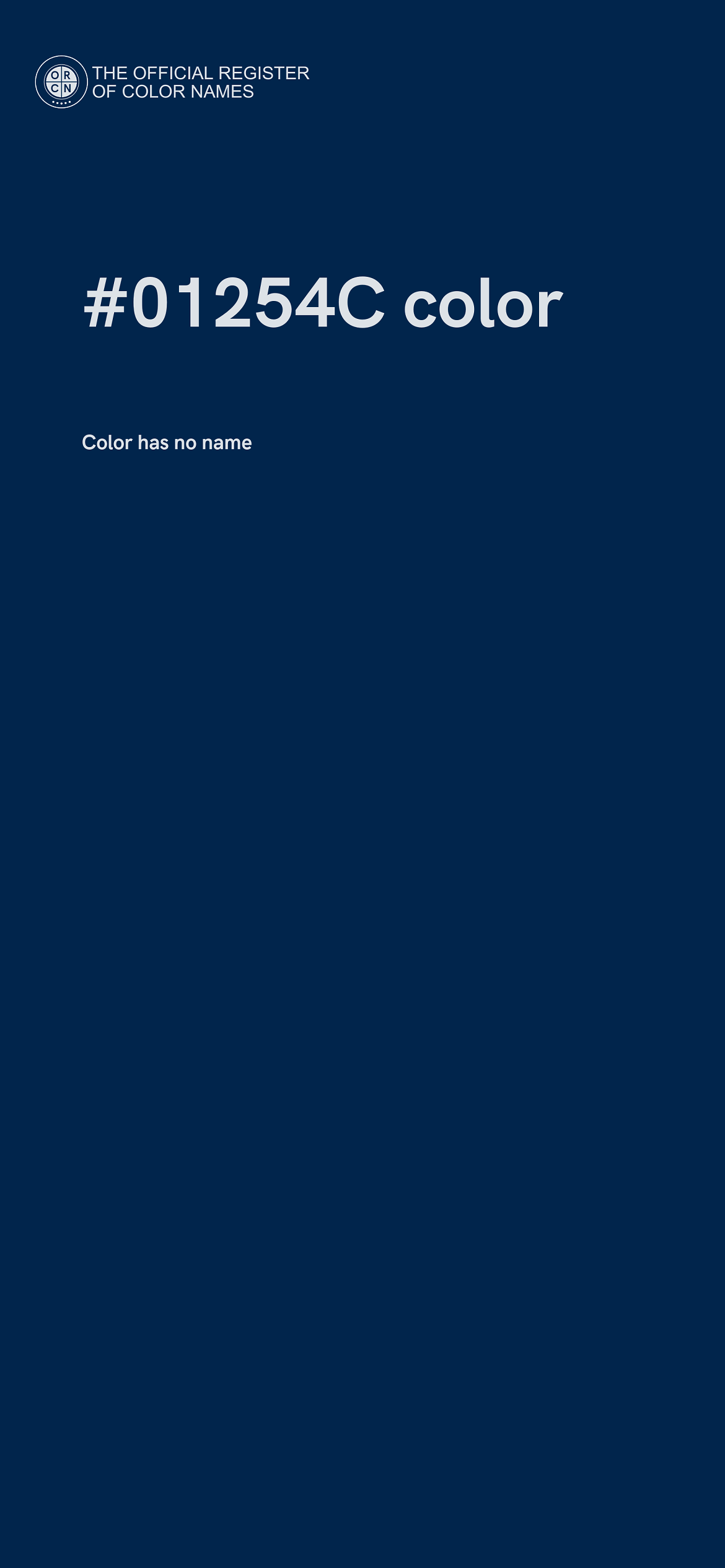 The digital color HEX #01254C belongs to the Azure Color Family featuring Full Saturation (Saturation Family) and Dark (Brightness Family).