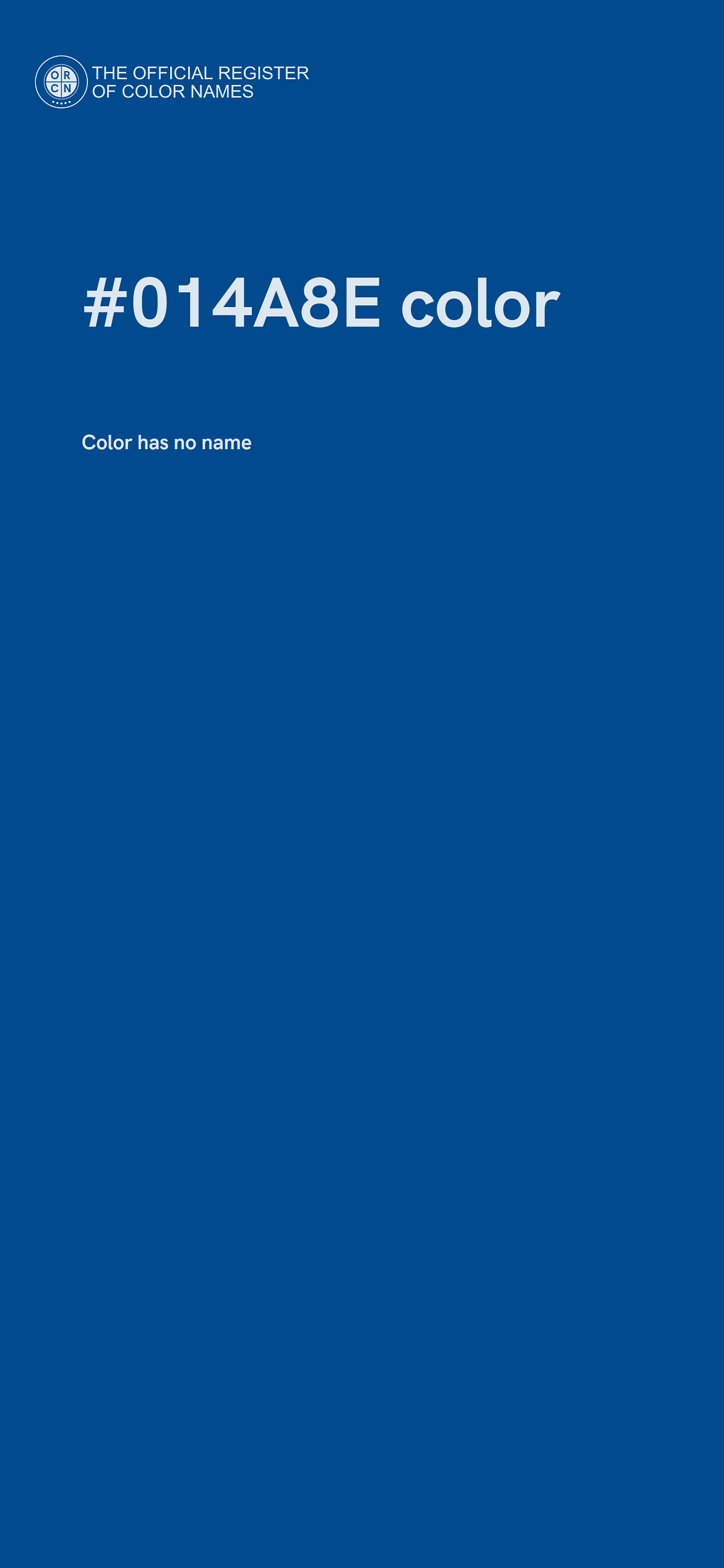 The digital color HEX #014A8E belongs to the Azure Color Family featuring Full Saturation (Saturation Family) and Neutral (Brightness Family).