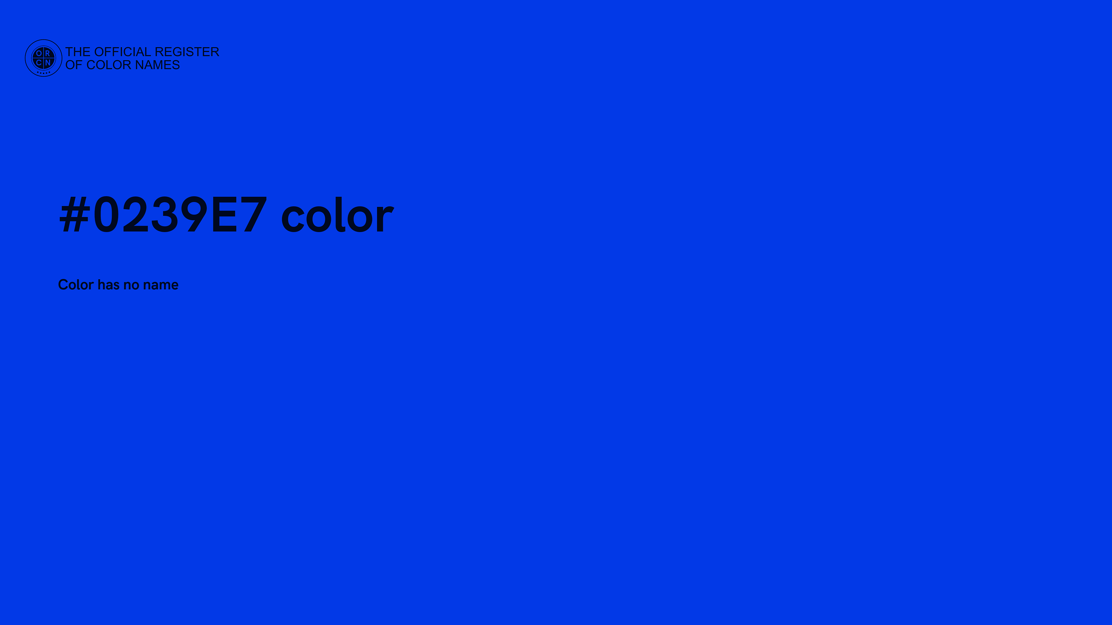 The digital color HEX #0239E7 belongs to the Blue Color Family featuring Full Saturation (Saturation Family) and Light (Brightness Family).