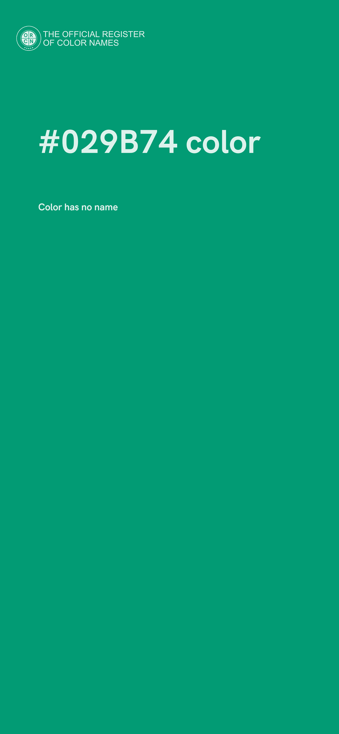 The digital color HEX #029B74 belongs to the Cyan Color Family featuring Full Saturation (Saturation Family) and Neutral (Brightness Family).