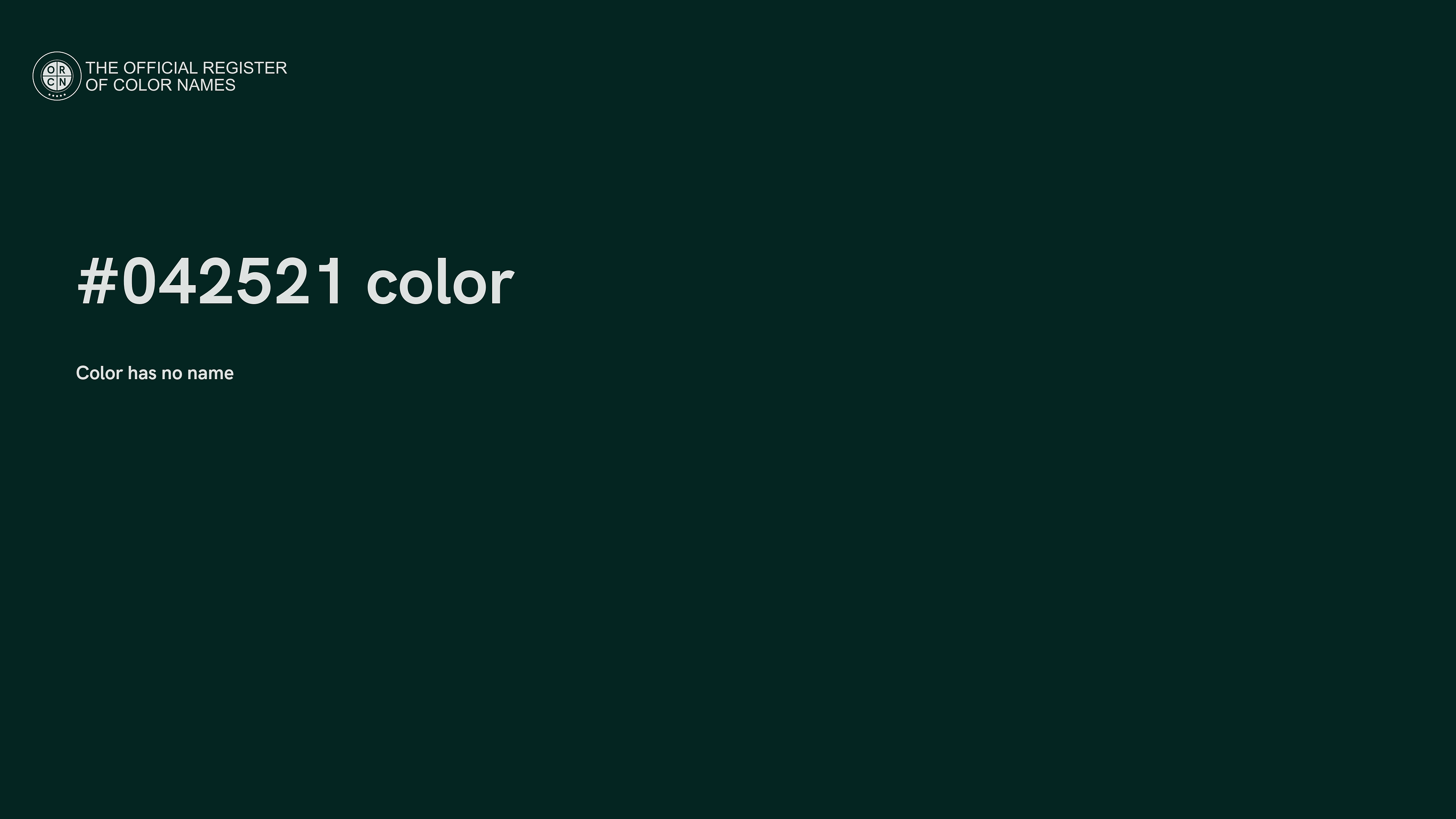 For printing in non digital world, #042521 is represented in CMYK as 13 Cyan, 0 Magenta, 2 Yellow, and 85 Black (Key) (C:13 M:0 Y:2 K:85).