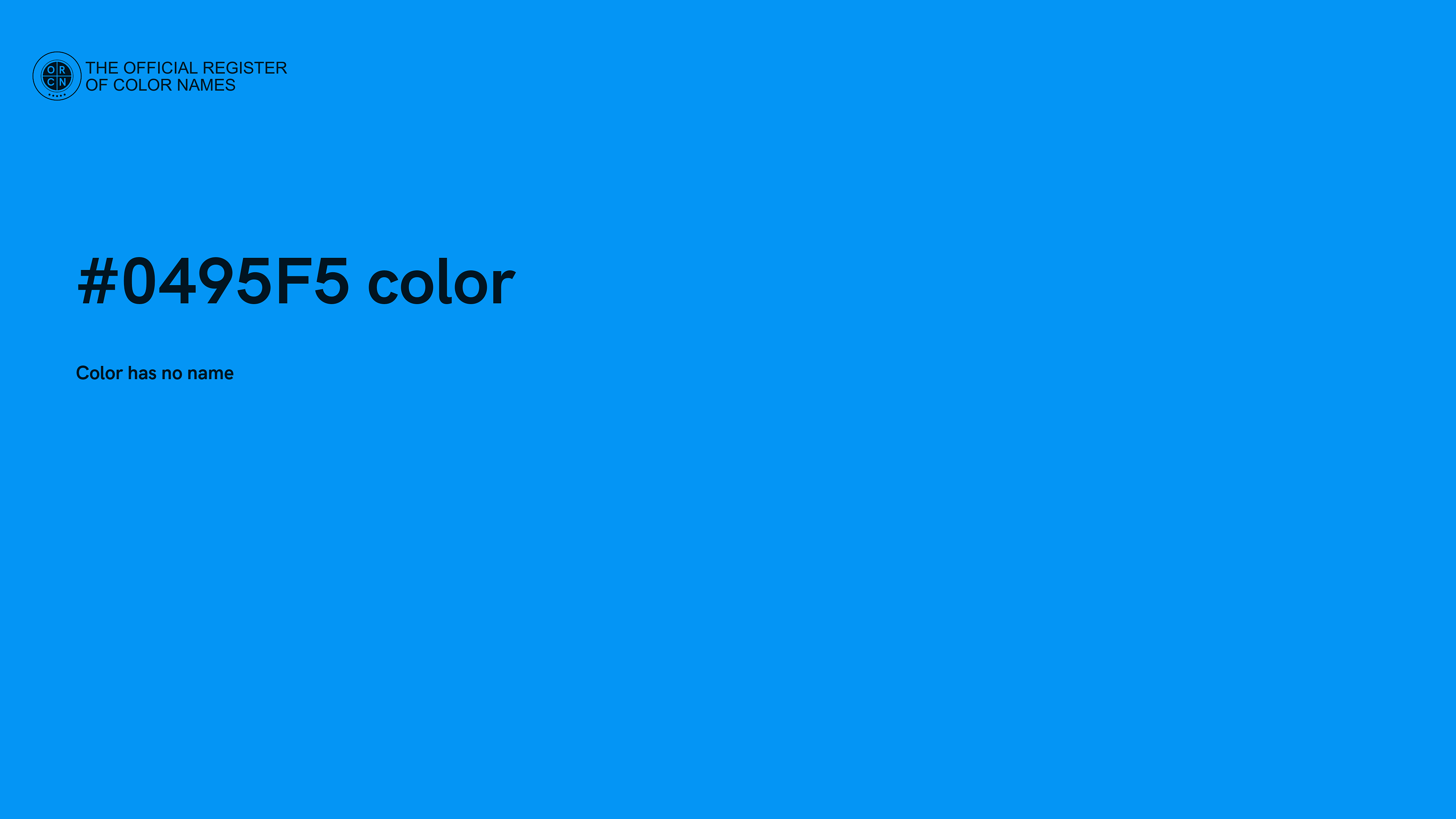 The digital color HEX #0495F5 belongs to the Azure Color Family featuring Full Saturation (Saturation Family) and Light (Brightness Family).