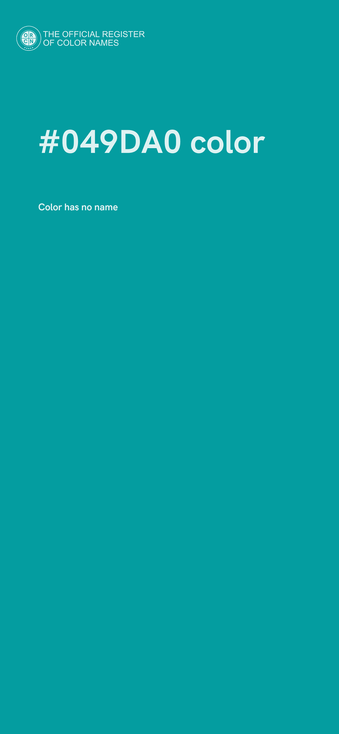 The digital color HEX #049DA0 belongs to the Cyan Color Family featuring Full Saturation (Saturation Family) and Neutral (Brightness Family).