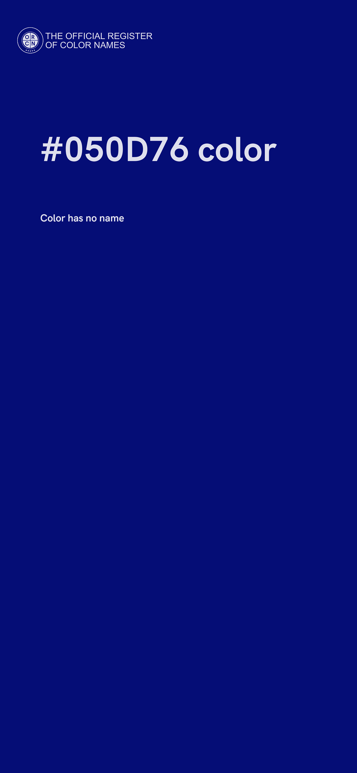 For printing in non digital world, #050D76 is represented in CMYK as 44 Cyan, 41 Magenta, 0 Yellow, and 54 Black (Key) (C:44 M:41 Y:0 K:54).