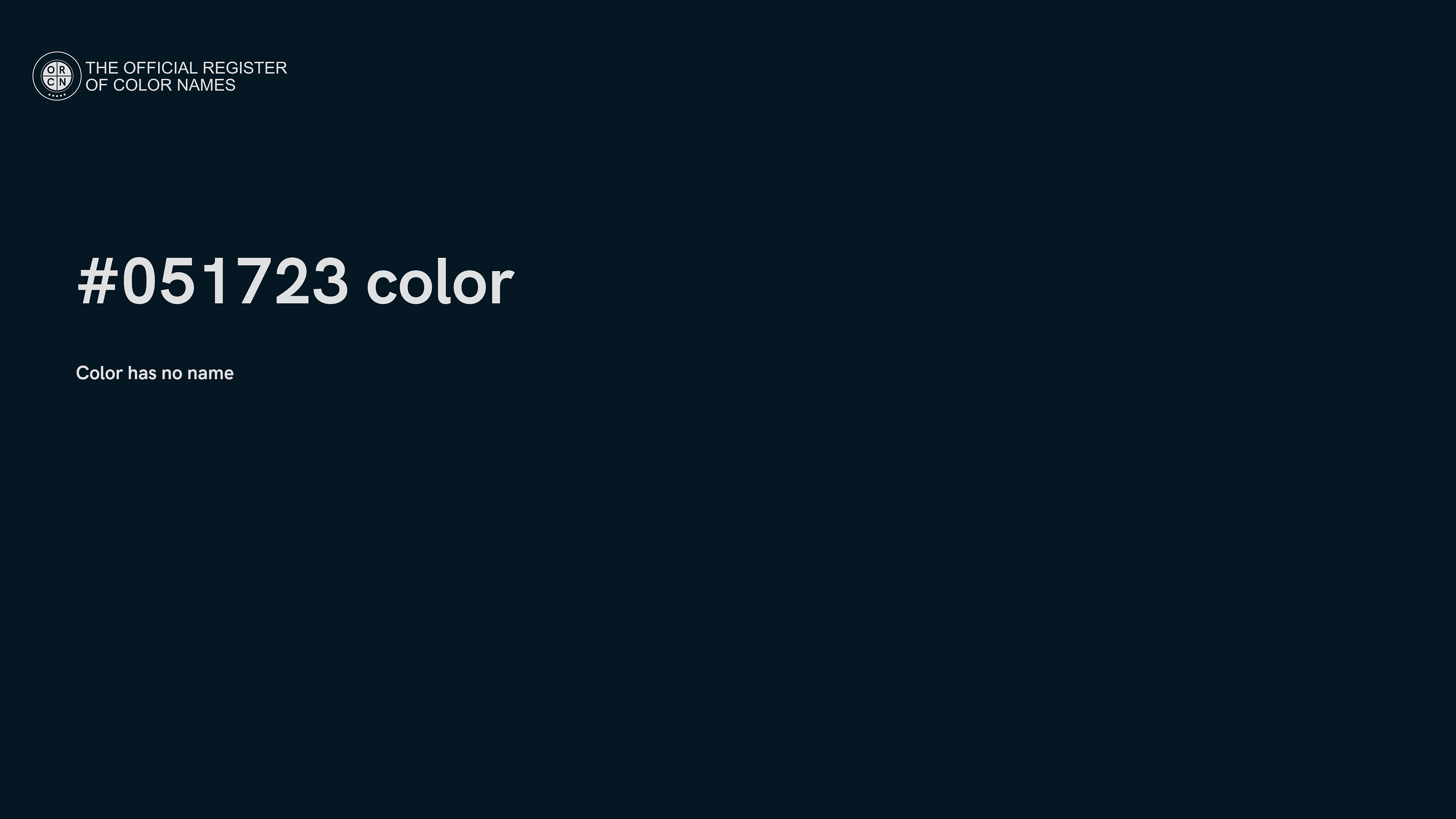 For printing in non digital world, #051723 is represented in CMYK as 12 Cyan, 5 Magenta, 0 Yellow, and 86 Black (Key) (C:12 M:5 Y:0 K:86).