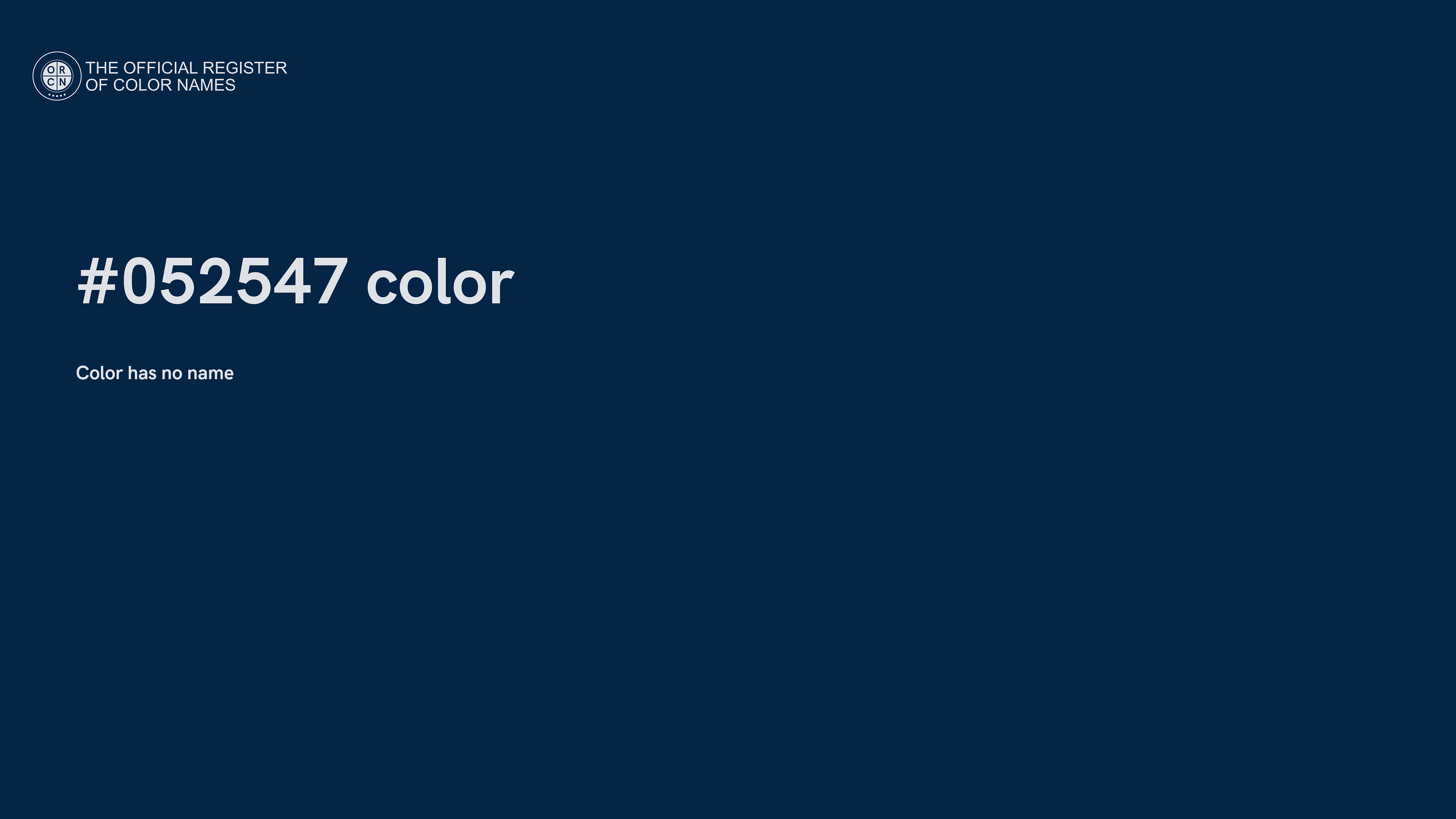 The digital color HEX #052547 belongs to the Azure Color Family featuring Full Saturation (Saturation Family) and Dark (Brightness Family).