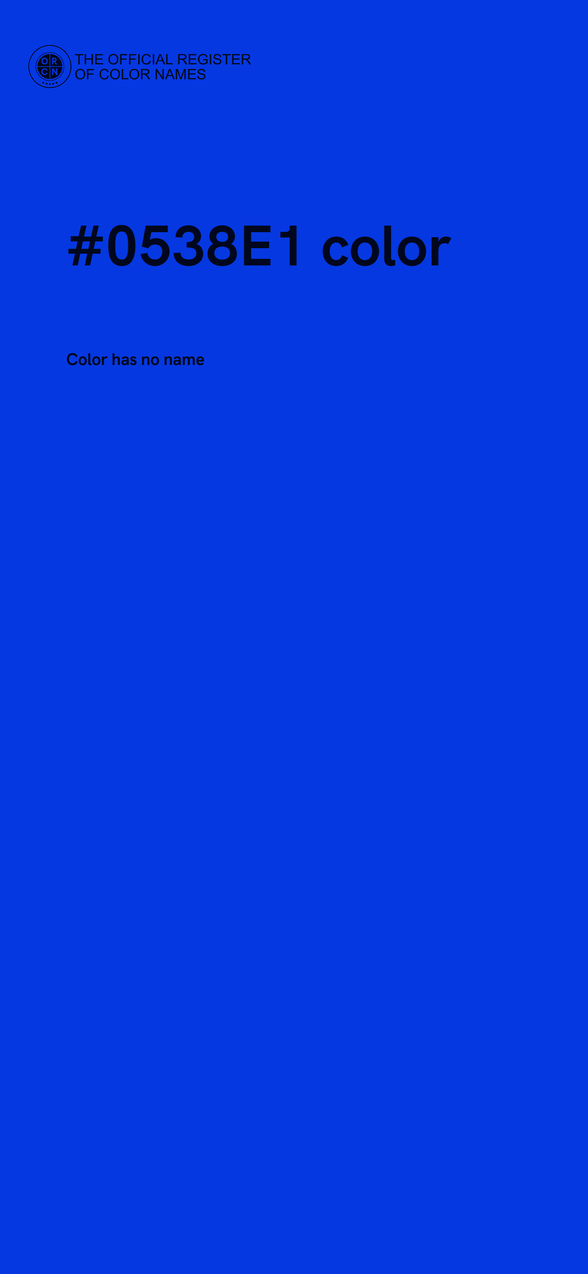 The digital color HEX #0538E1 belongs to the Blue Color Family featuring Full Saturation (Saturation Family) and Light (Brightness Family).