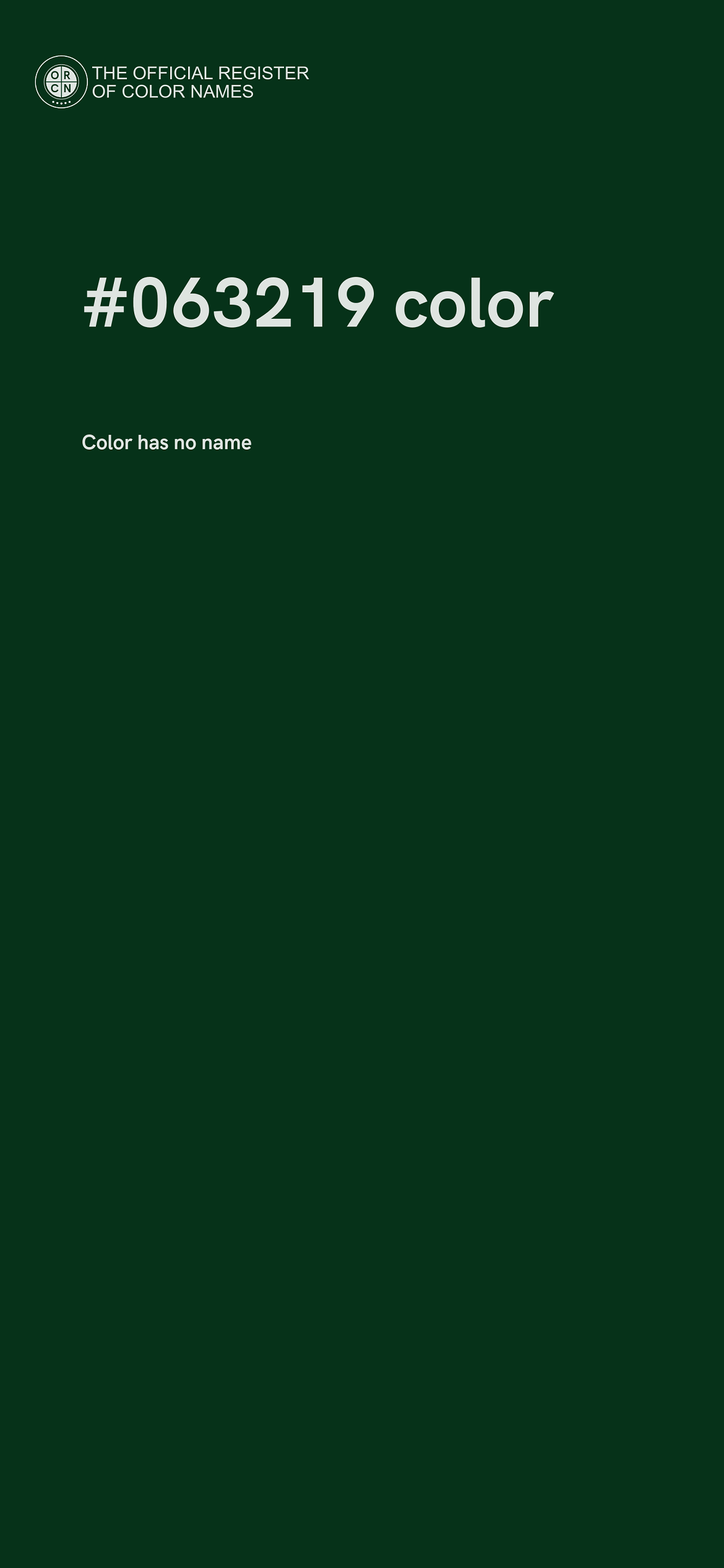 The digital color HEX #063219 belongs to the Spring Green Color Family featuring High Saturation (Saturation Family) and Dark (Brightness Family).