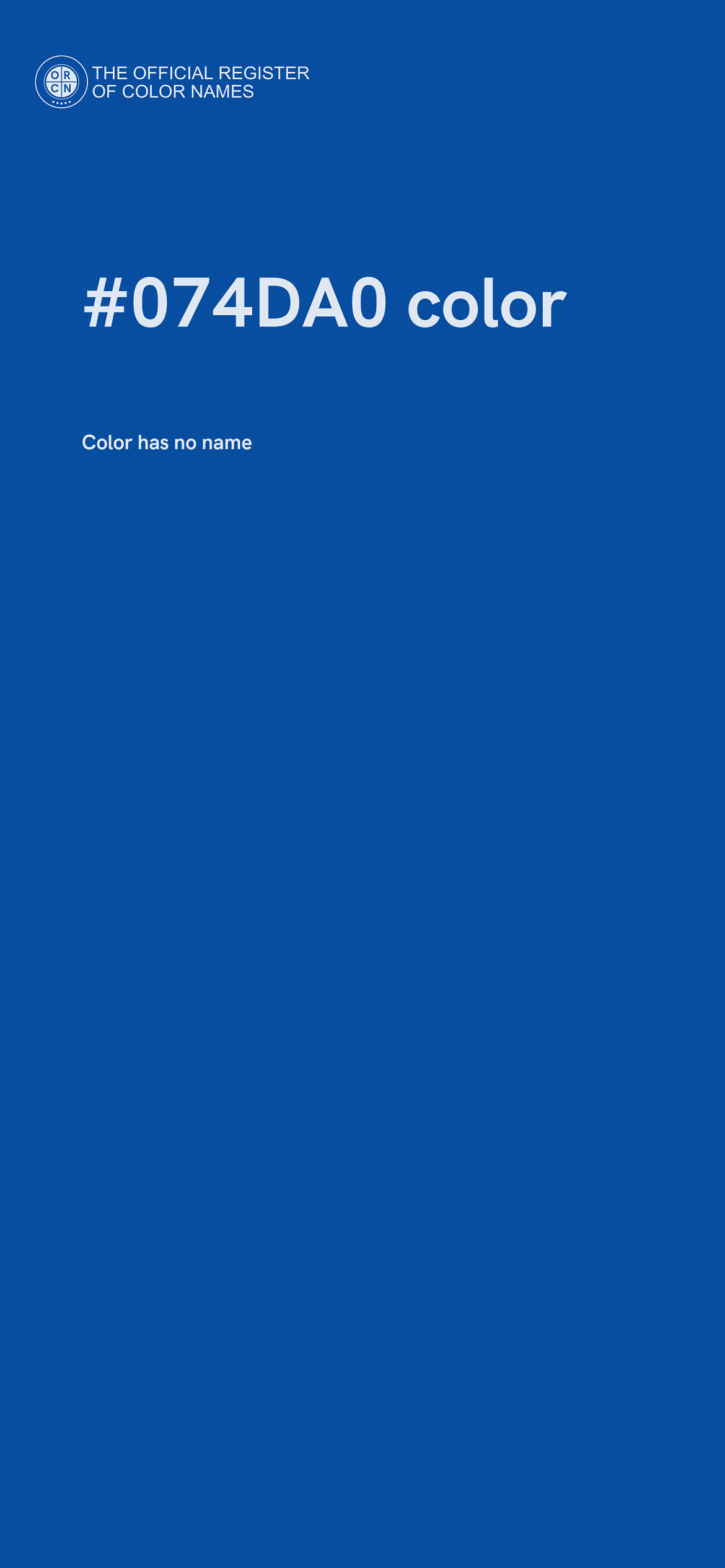 The digital color HEX #074DA0 belongs to the Azure Color Family featuring Full Saturation (Saturation Family) and Neutral (Brightness Family).