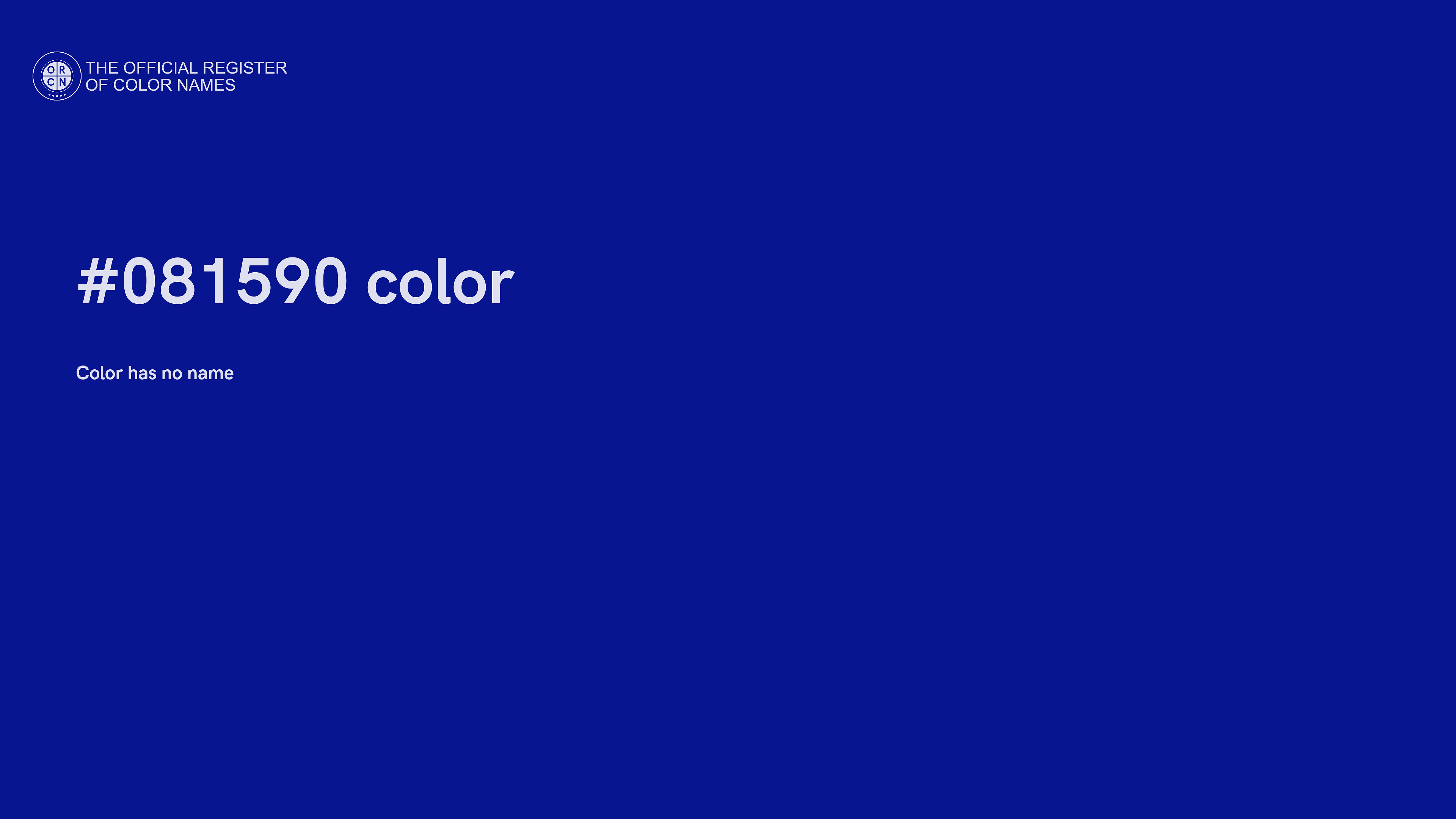 The digital color HEX #081590 belongs to the Blue Color Family featuring Full Saturation (Saturation Family) and Neutral (Brightness Family).