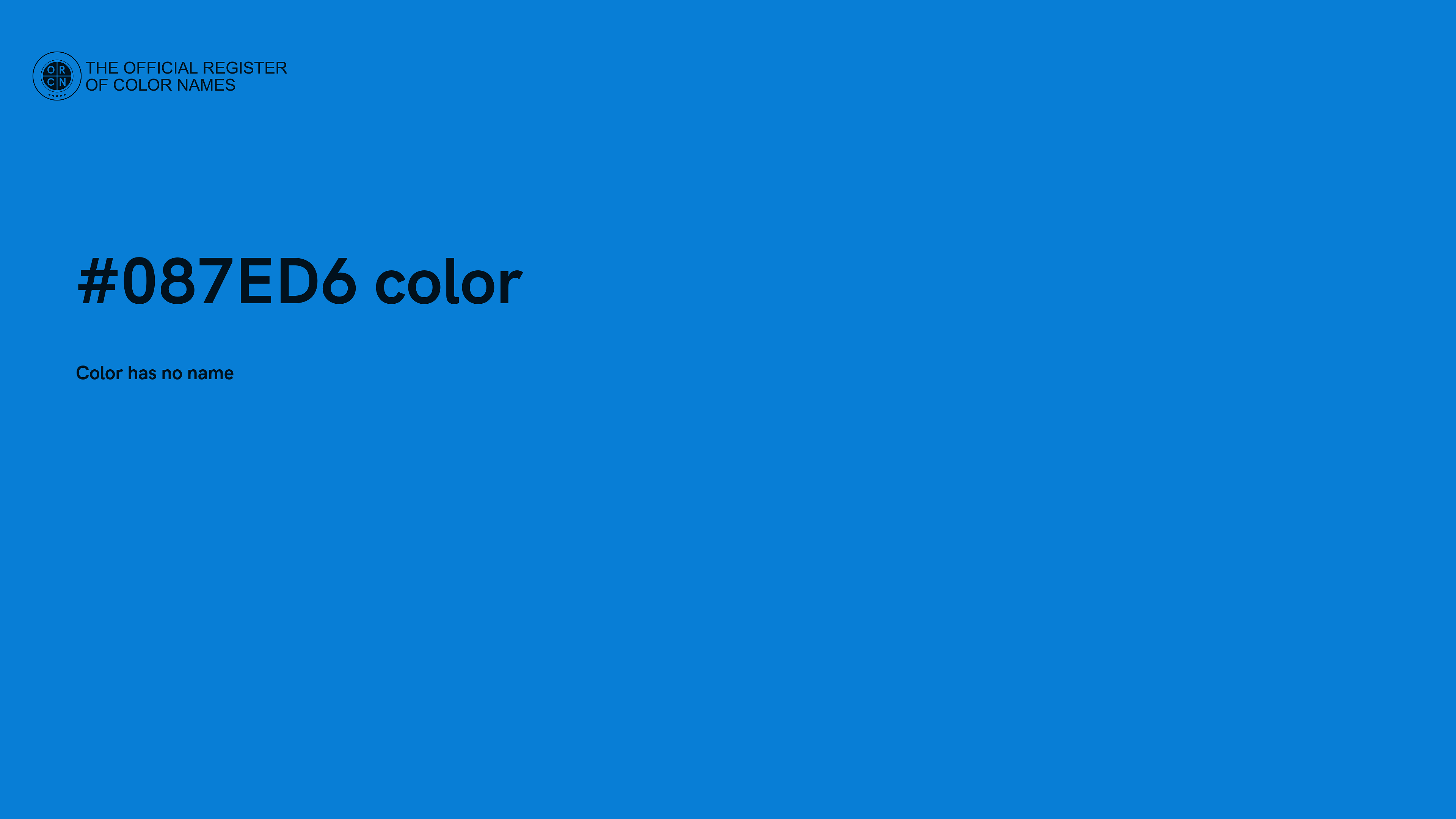 The digital color HEX #087ED6 belongs to the Azure Color Family featuring Full Saturation (Saturation Family) and Light (Brightness Family).