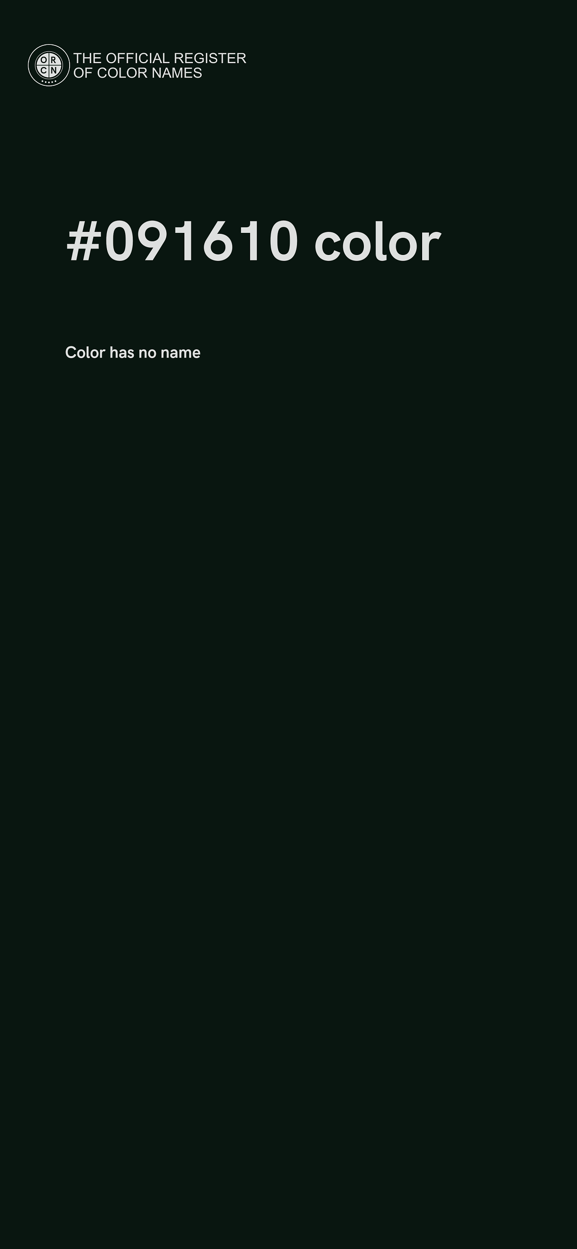 For printing in non digital world, #091610 is represented in CMYK as 5 Cyan, 0 Magenta, 2 Yellow, and 91 Black (Key) (C:5 M:0 Y:2 K:91).