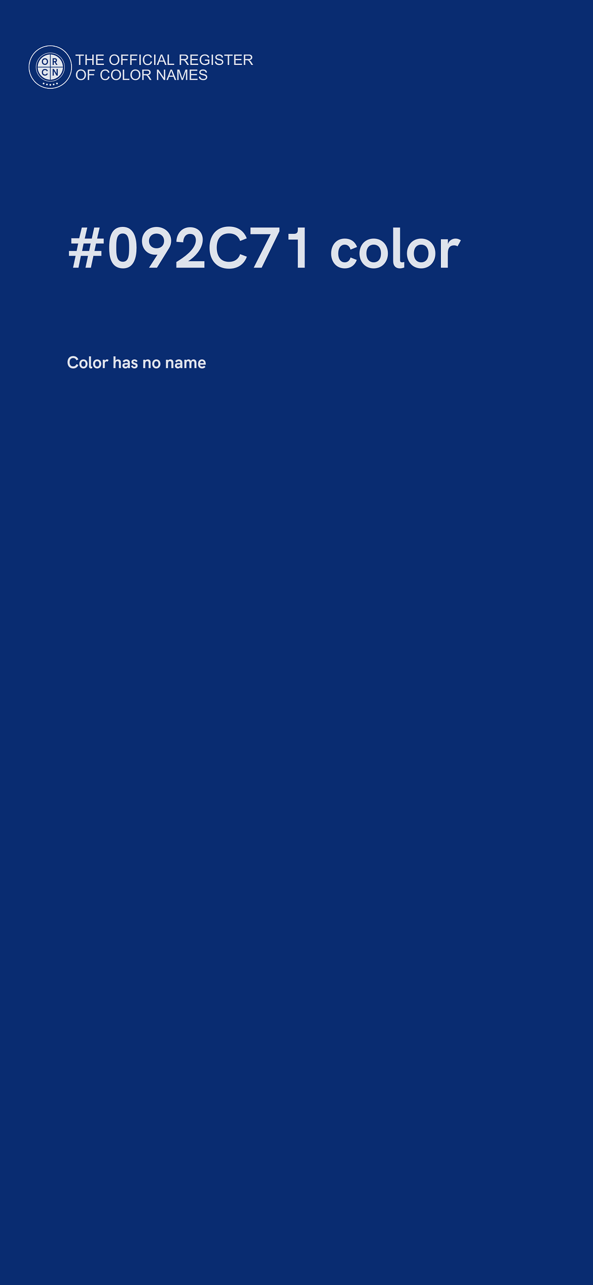 The digital color HEX #092C71 belongs to the Azure Color Family featuring Full Saturation (Saturation Family) and Dark (Brightness Family).