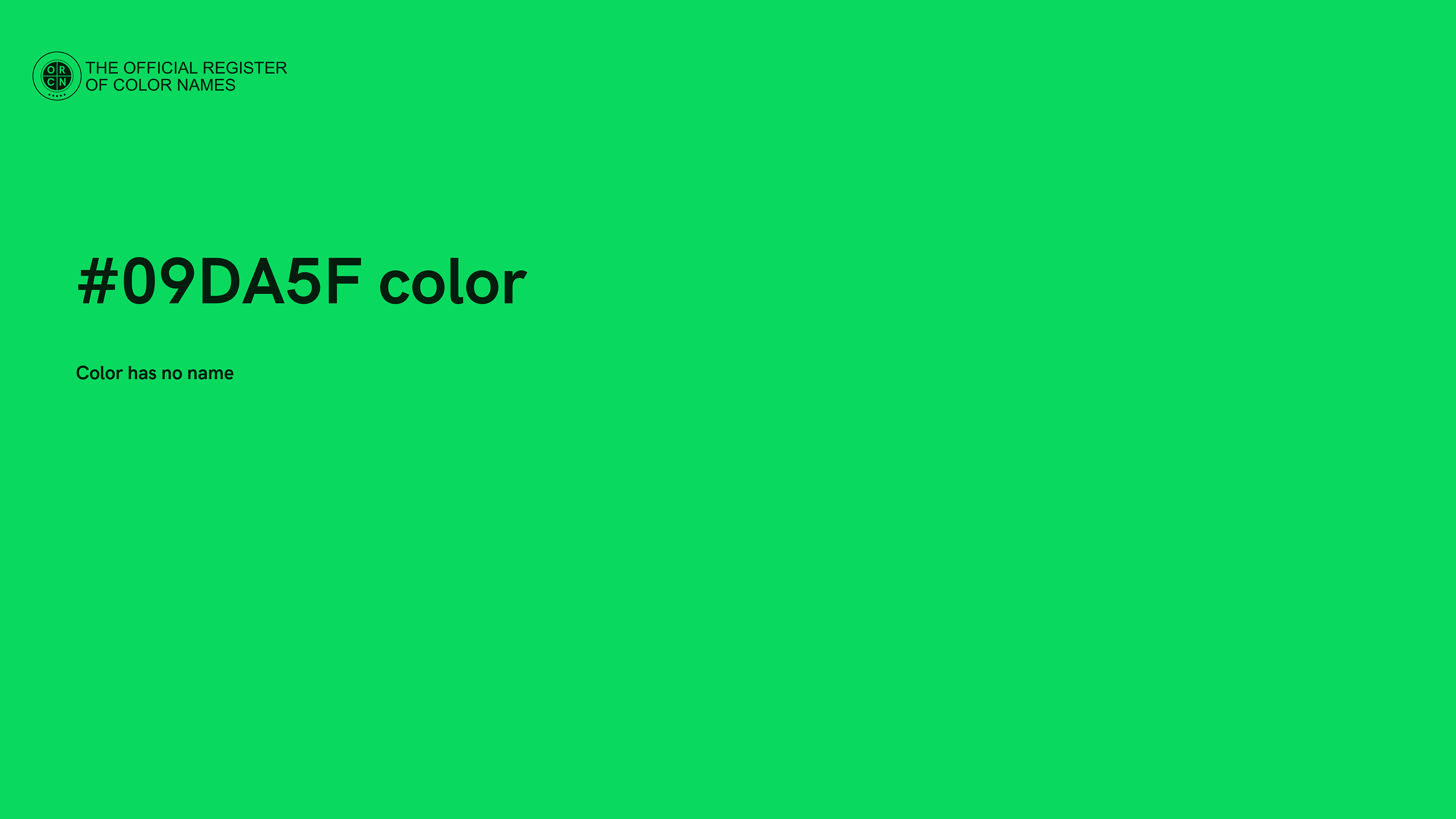 The digital color HEX #09DA5F belongs to the Spring Green Color Family featuring Full Saturation (Saturation Family) and Light (Brightness Family).