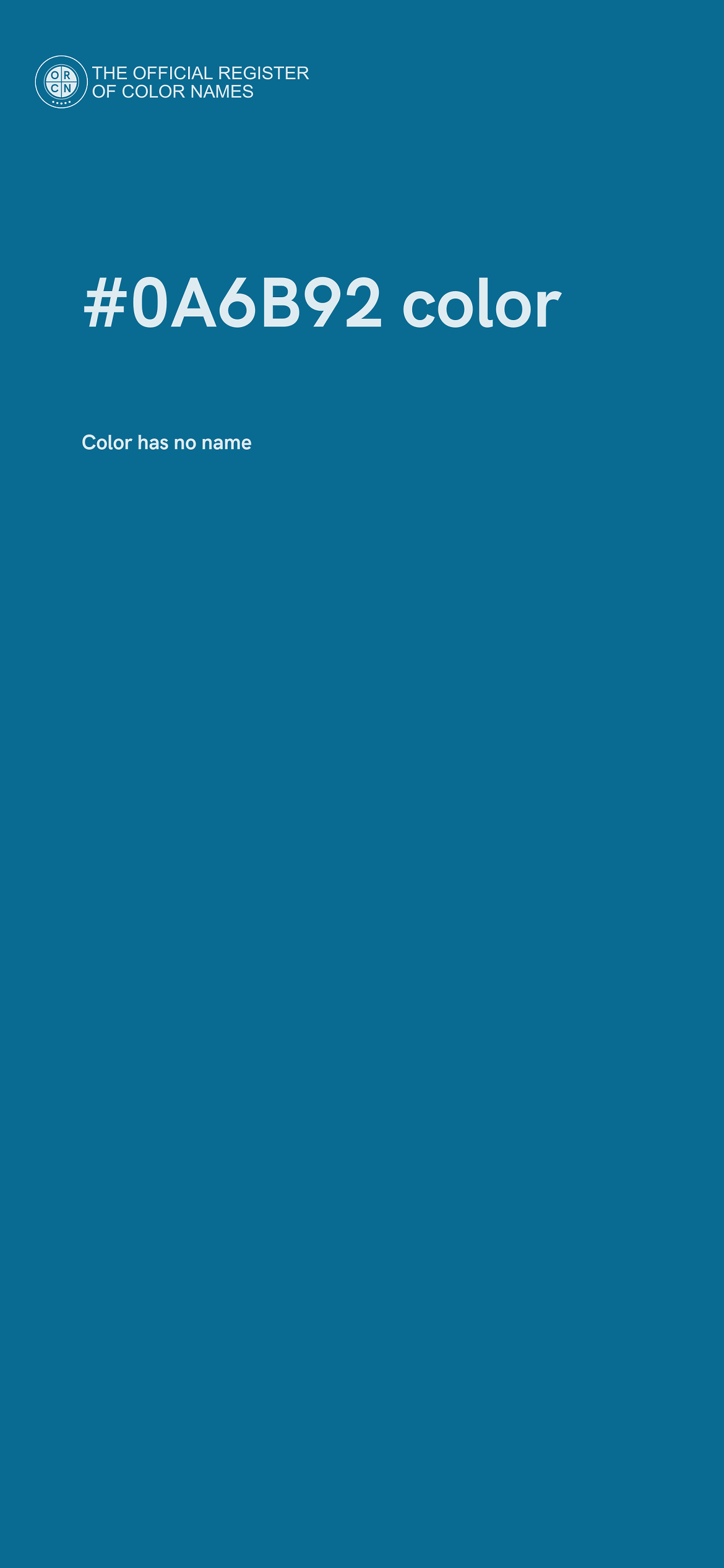 The digital color HEX #0A6B92 belongs to the Azure Color Family featuring Full Saturation (Saturation Family) and Neutral (Brightness Family).