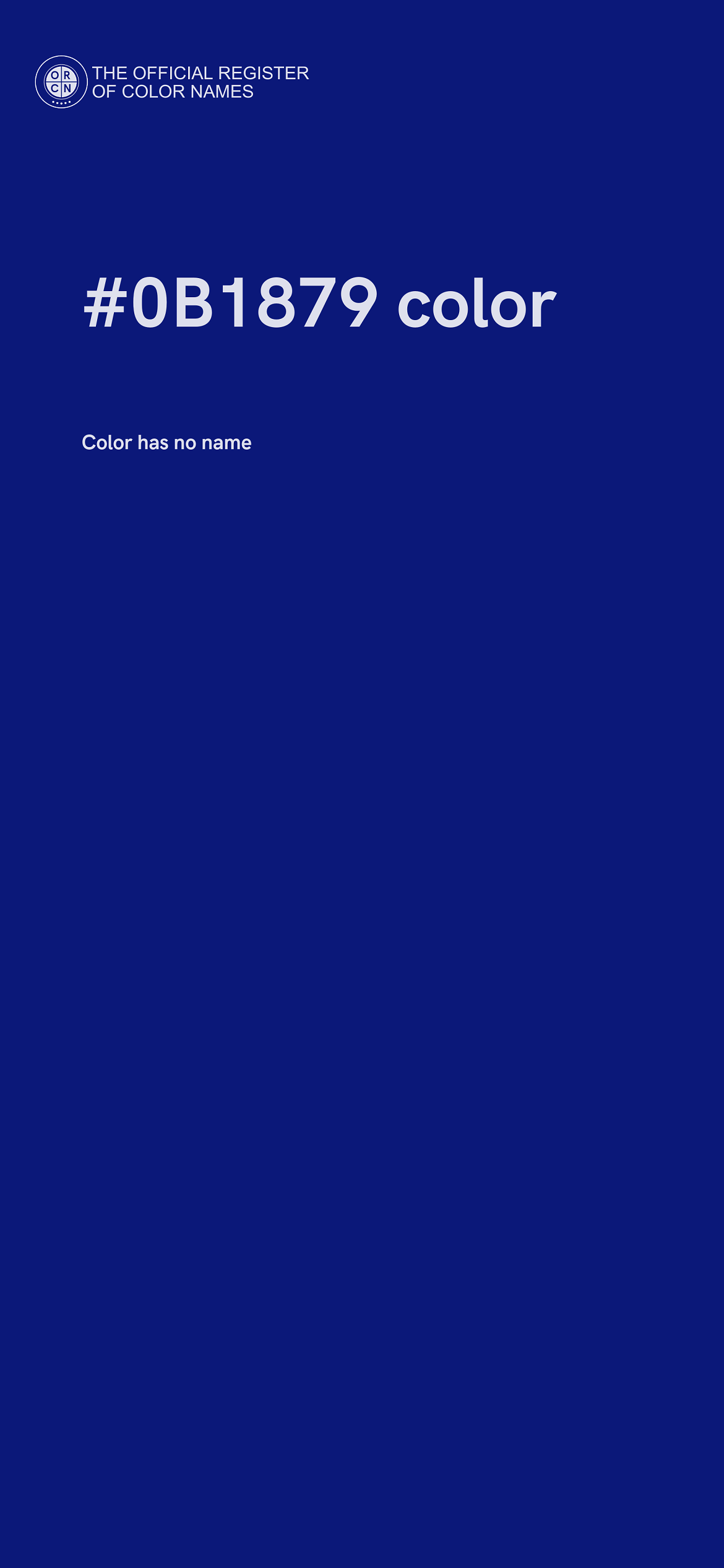 The digital color HEX #0B1879 belongs to the Blue Color Family featuring High Saturation (Saturation Family) and Neutral (Brightness Family).