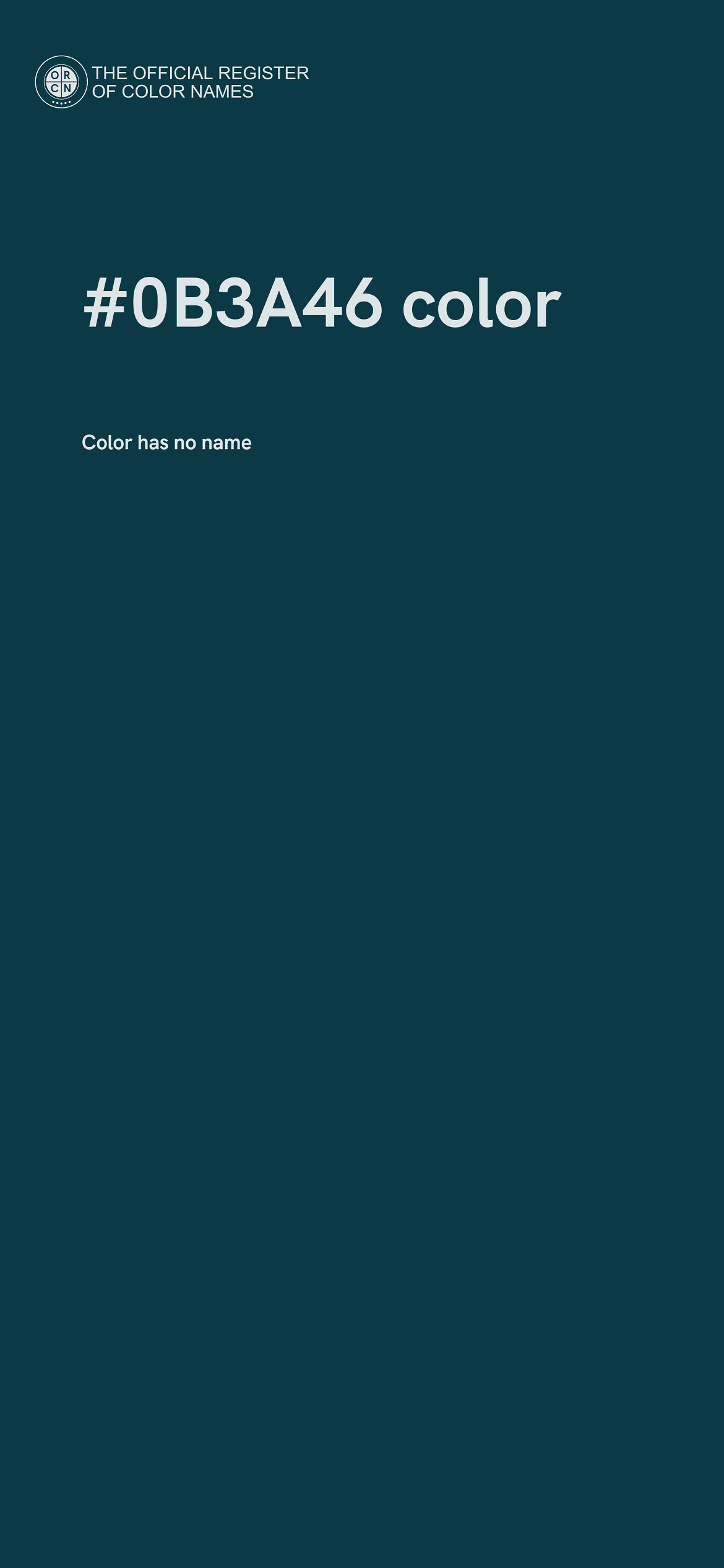 For printing in non digital world, #0B3A46 is represented in CMYK as 23 Cyan, 5 Magenta, 0 Yellow, and 73 Black (Key) (C:23 M:5 Y:0 K:73).