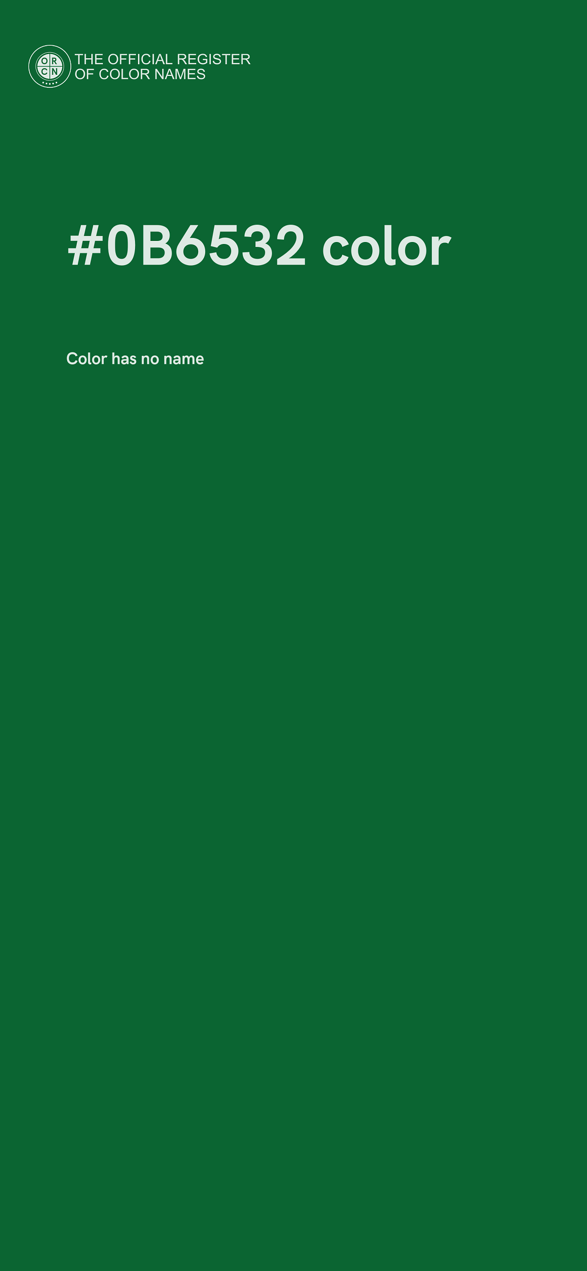 The digital color HEX #0B6532 belongs to the Spring Green Color Family featuring High Saturation (Saturation Family) and Dark (Brightness Family).