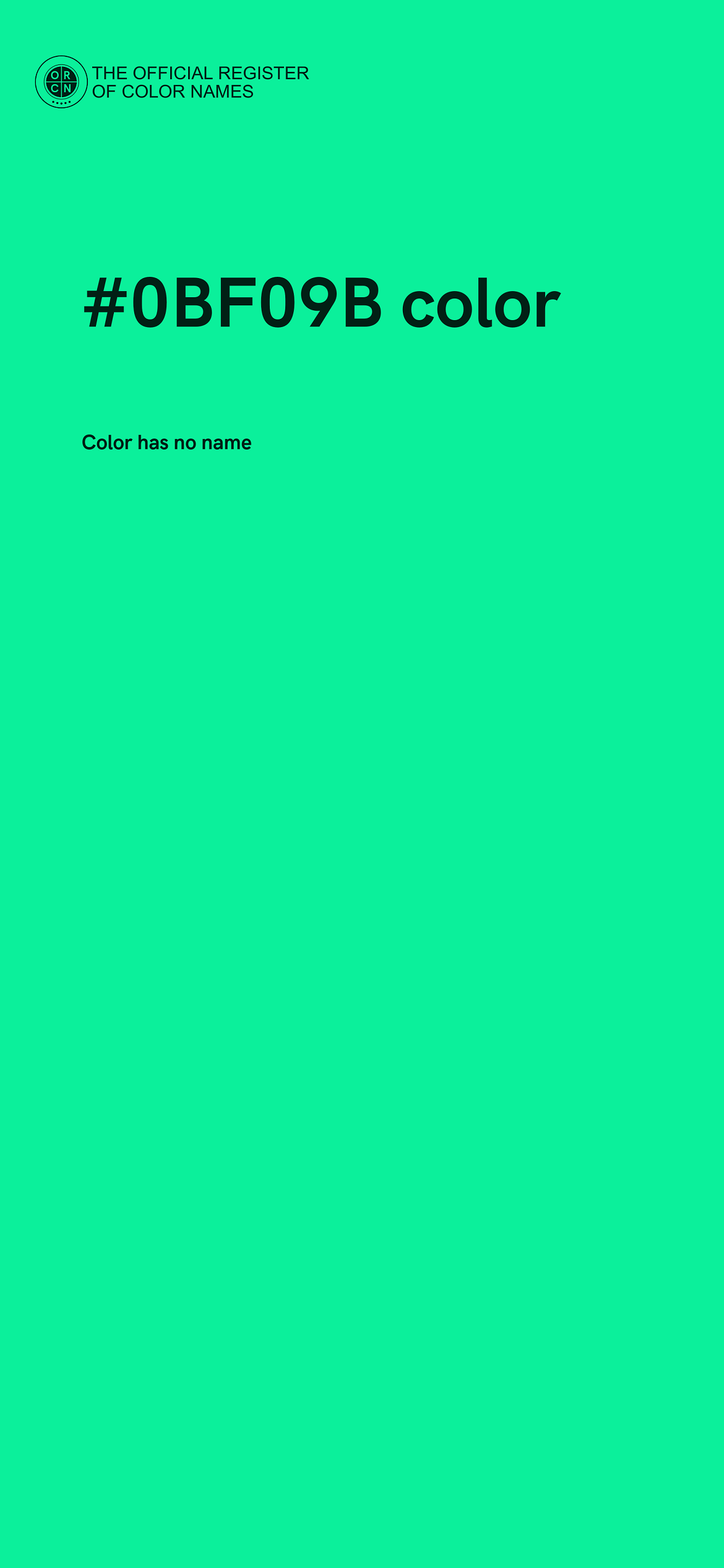 The digital color HEX #0BF09B belongs to the Spring Green Color Family featuring Full Saturation (Saturation Family) and Light (Brightness Family).