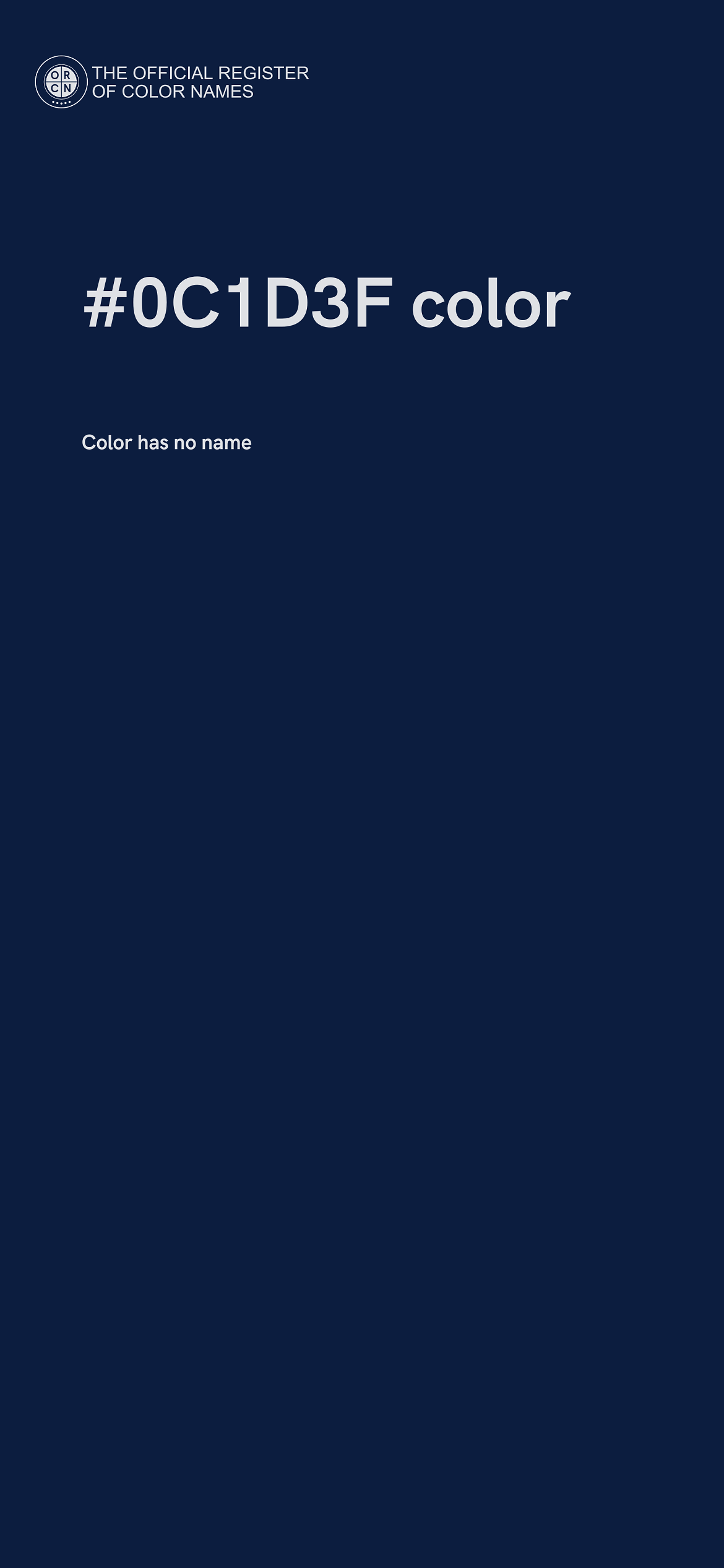 The digital color HEX #0C1D3F belongs to the Azure Color Family featuring High Saturation (Saturation Family) and Dark (Brightness Family).