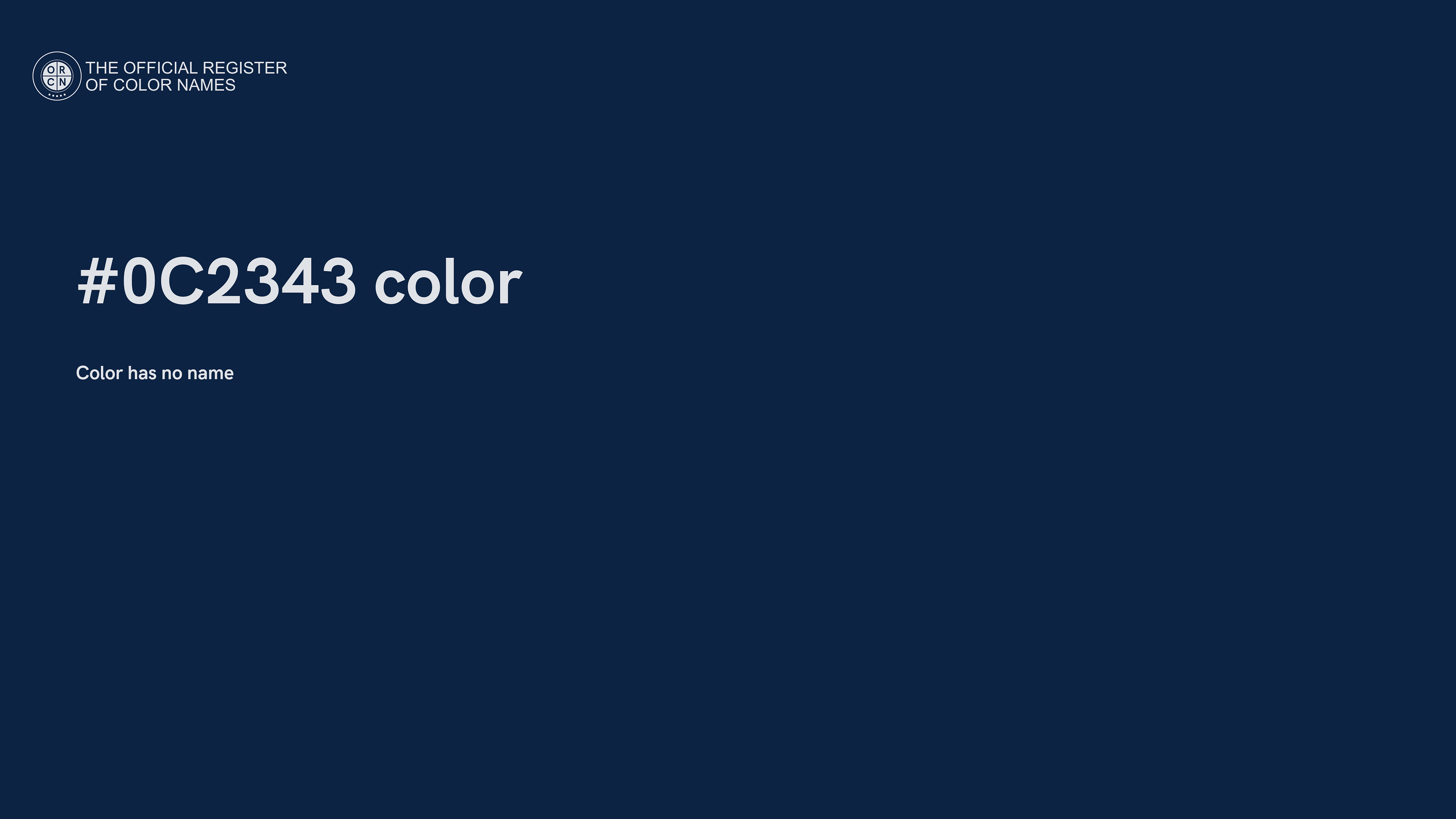 The digital color HEX #0C2343 belongs to the Azure Color Family featuring High Saturation (Saturation Family) and Dark (Brightness Family).