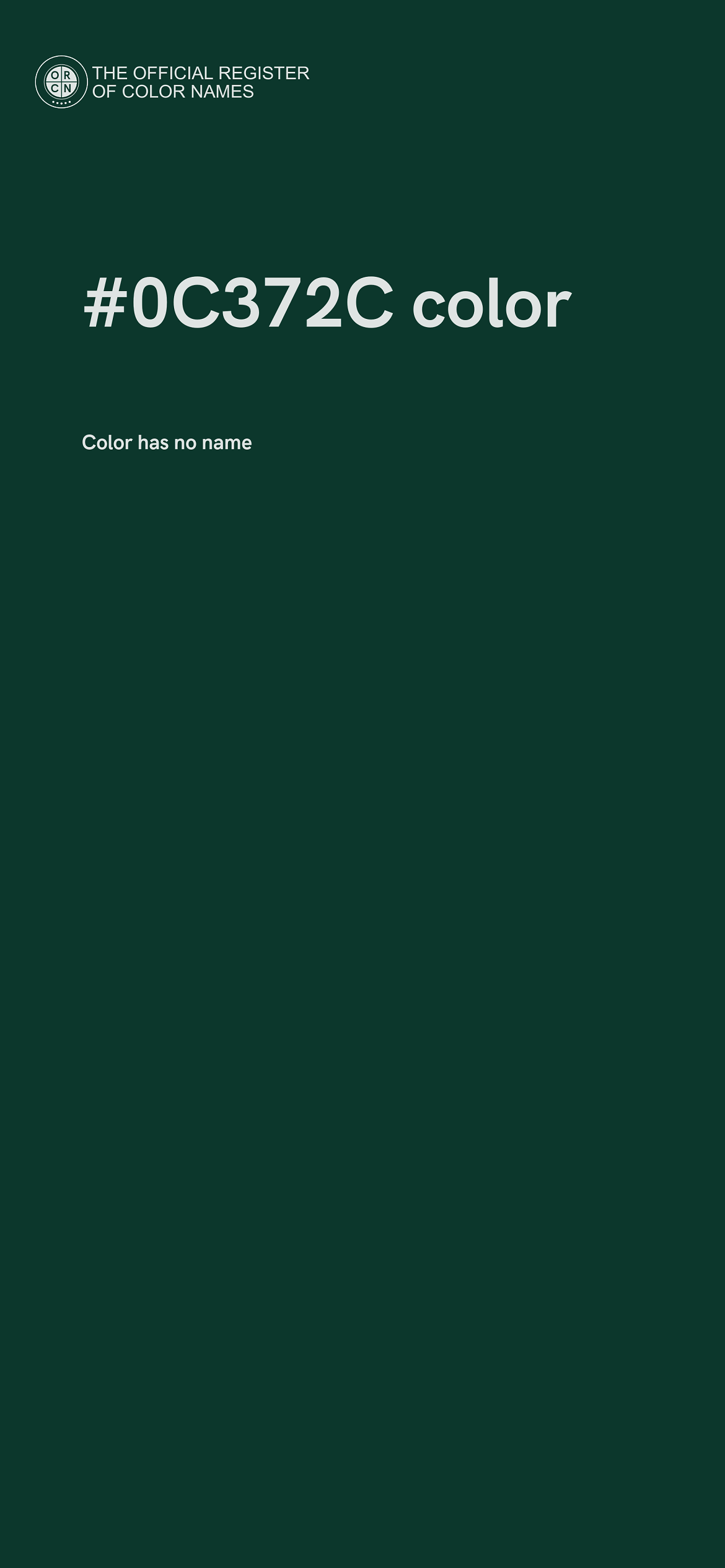 The digital color HEX #0C372C belongs to the Cyan Color Family featuring High Saturation (Saturation Family) and Dark (Brightness Family).