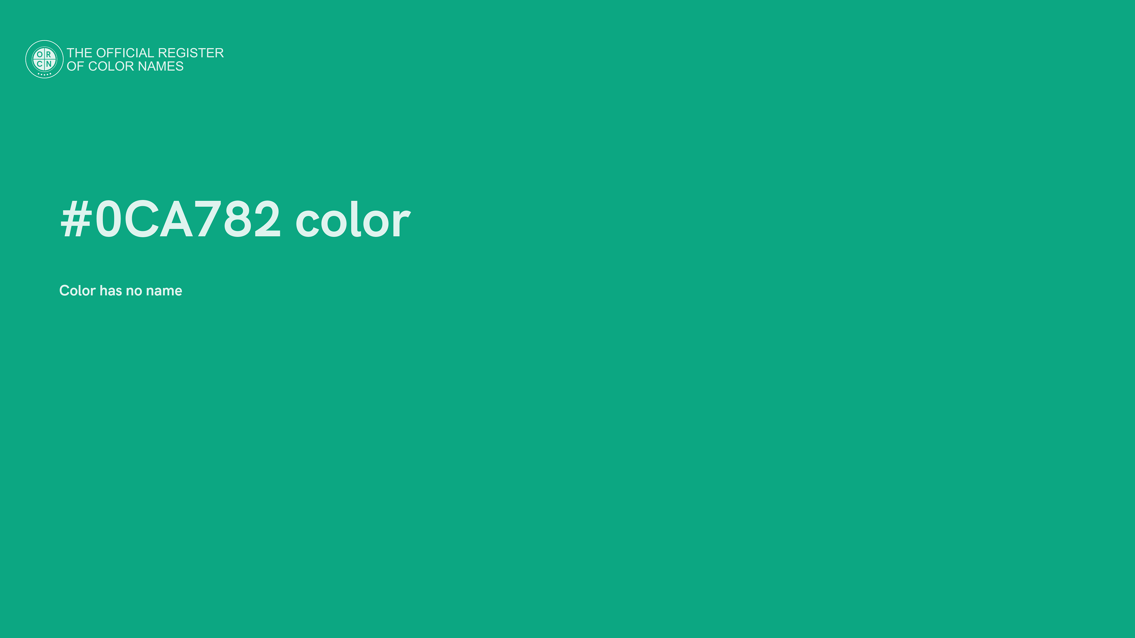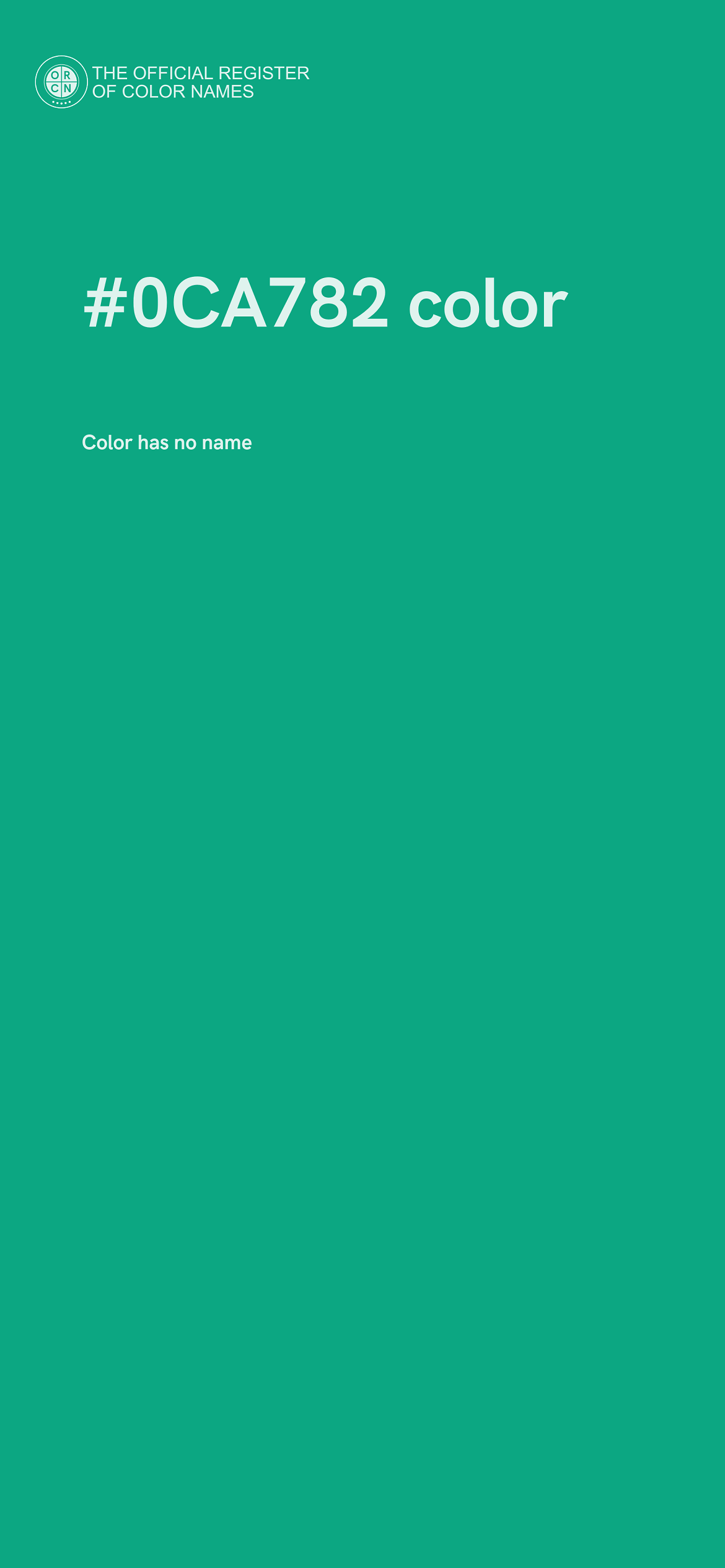 The digital color HEX #0CA782 belongs to the Cyan Color Family featuring Full Saturation (Saturation Family) and Neutral (Brightness Family).