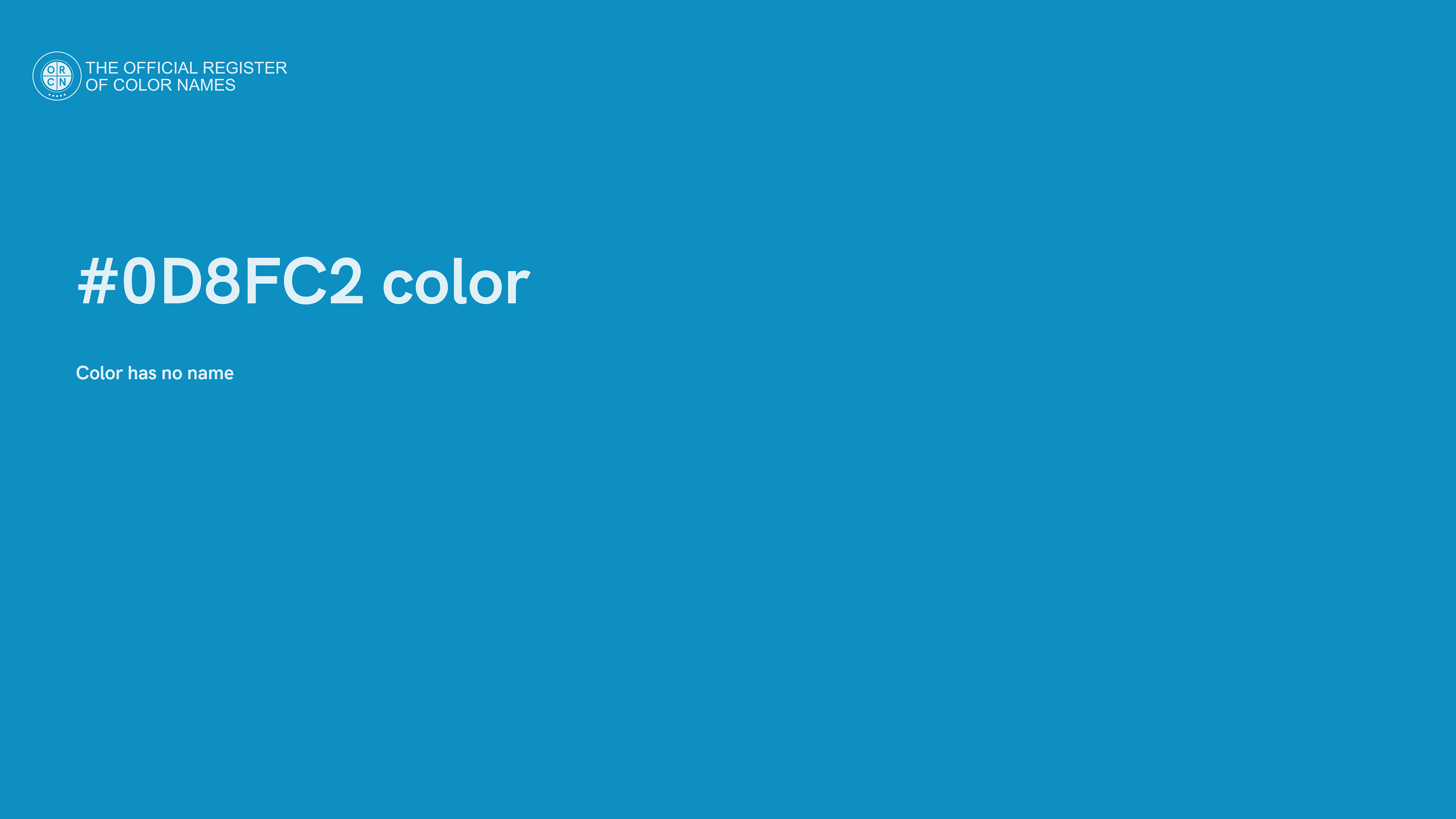 The digital color HEX #0D8FC2 belongs to the Azure Color Family featuring Full Saturation (Saturation Family) and Light (Brightness Family).