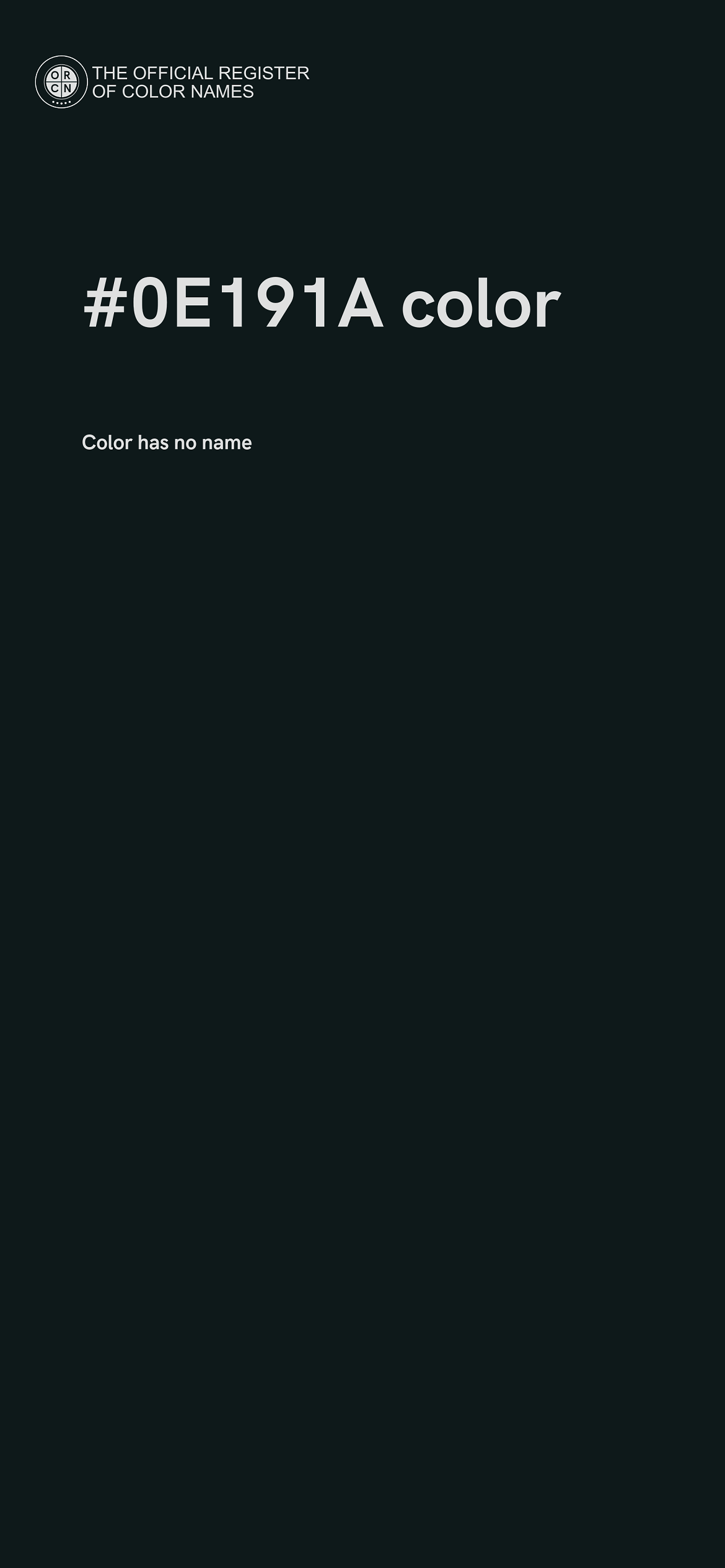 The digital color HEX #0E191A belongs to the Cyan Color Family featuring Mild Saturation (Saturation Family) and Very Dark (Brightness Family).