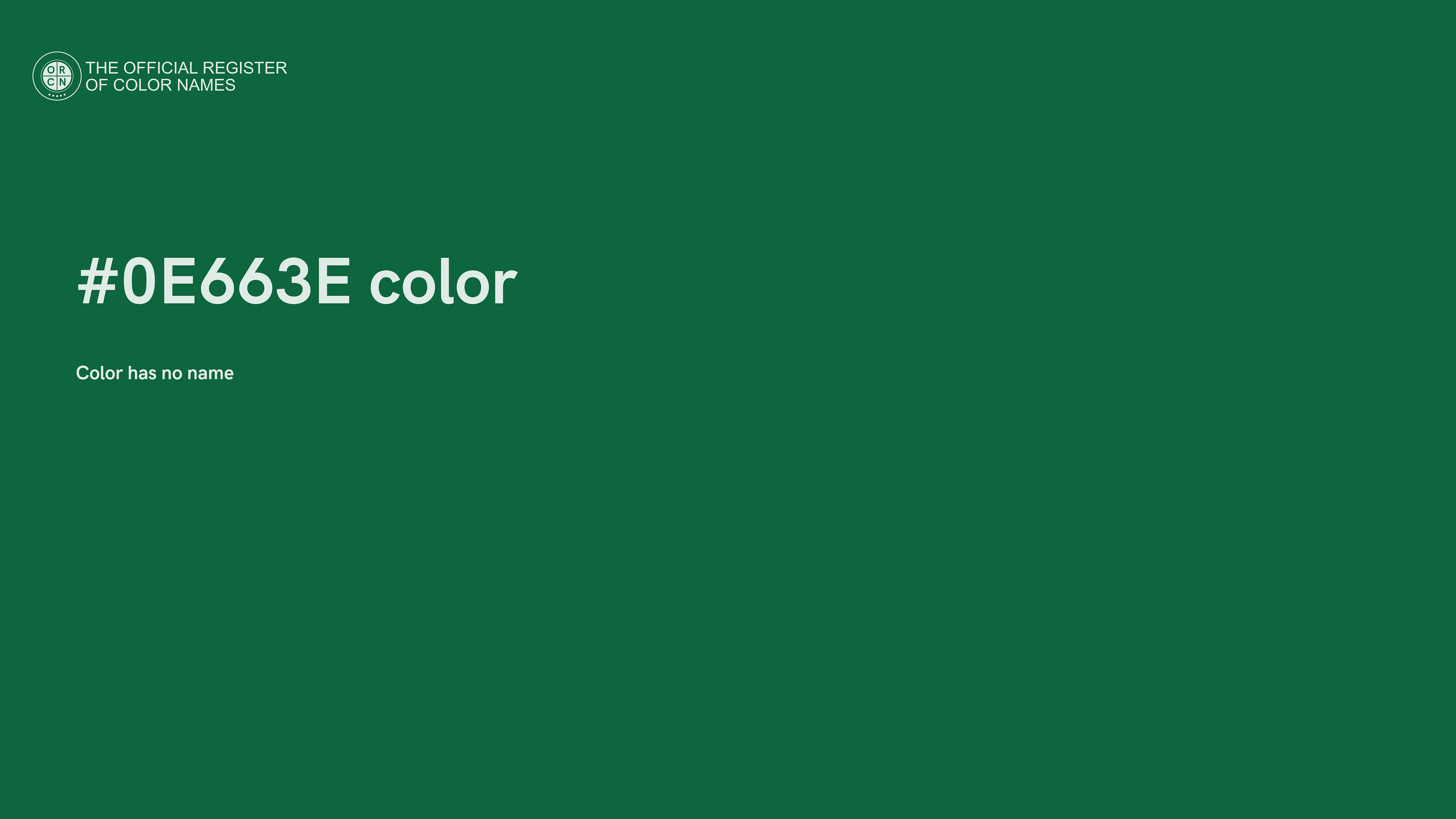The digital color HEX #0E663E belongs to the Spring Green Color Family featuring High Saturation (Saturation Family) and Dark (Brightness Family).