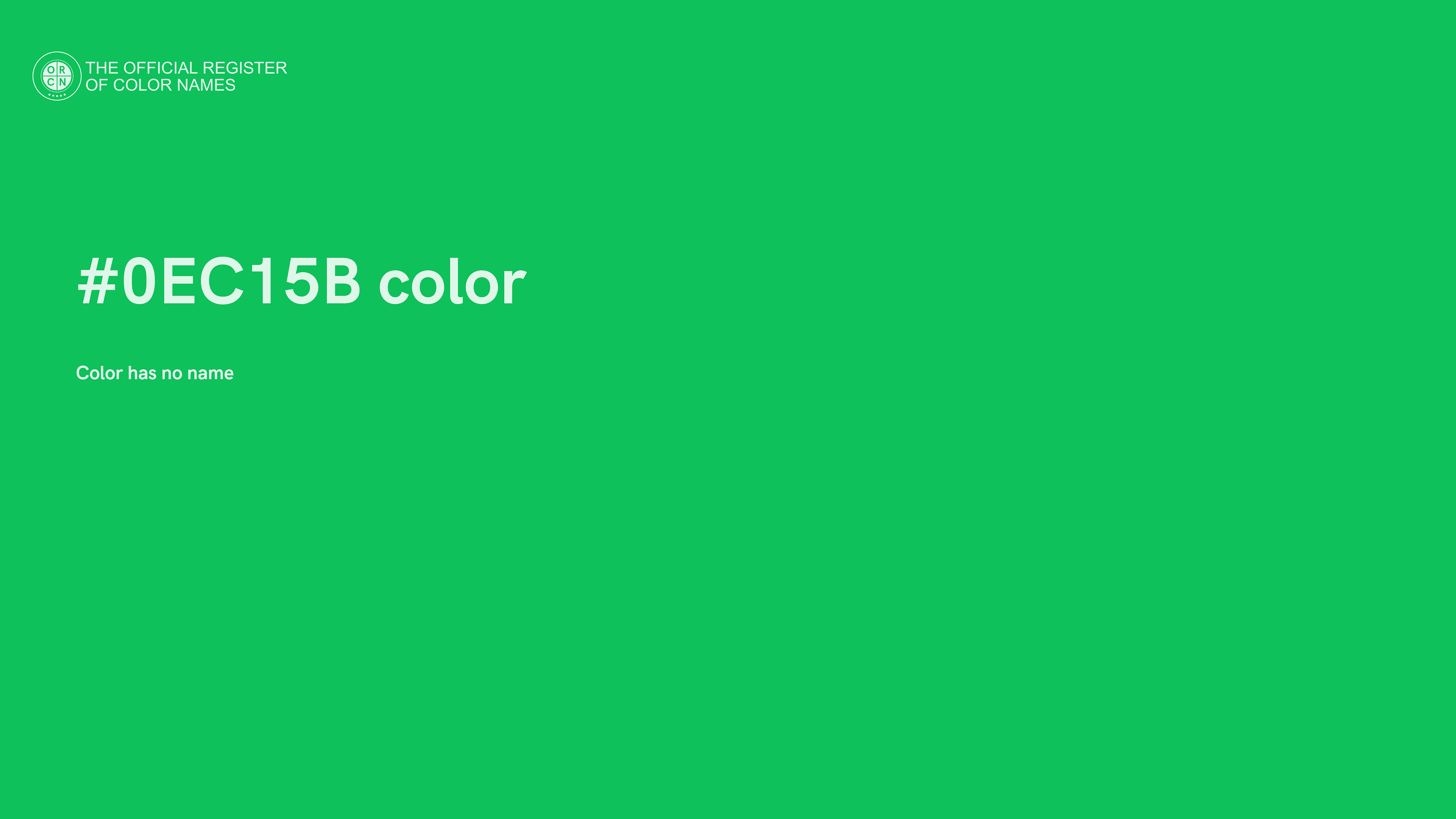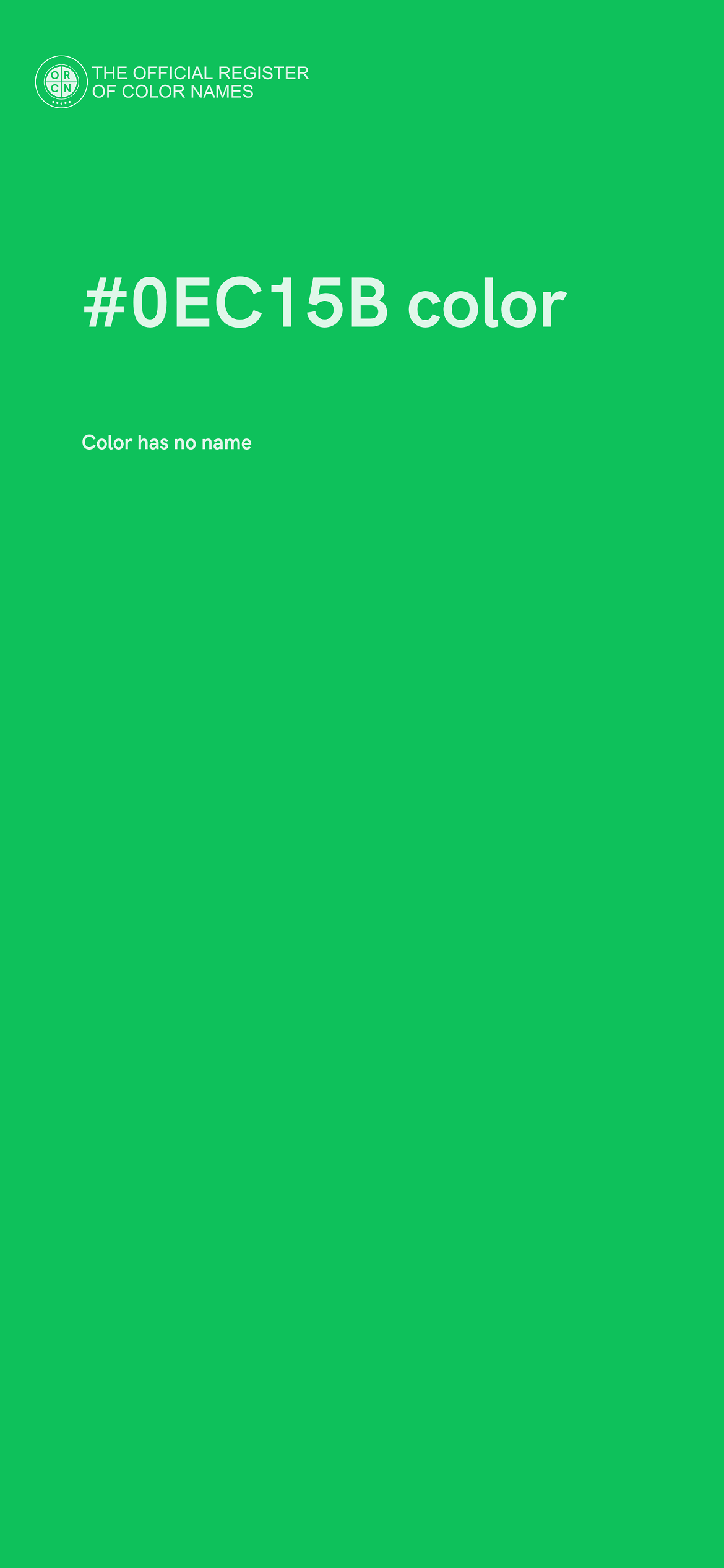 The digital color HEX #0EC15B belongs to the Spring Green Color Family featuring Full Saturation (Saturation Family) and Light (Brightness Family).