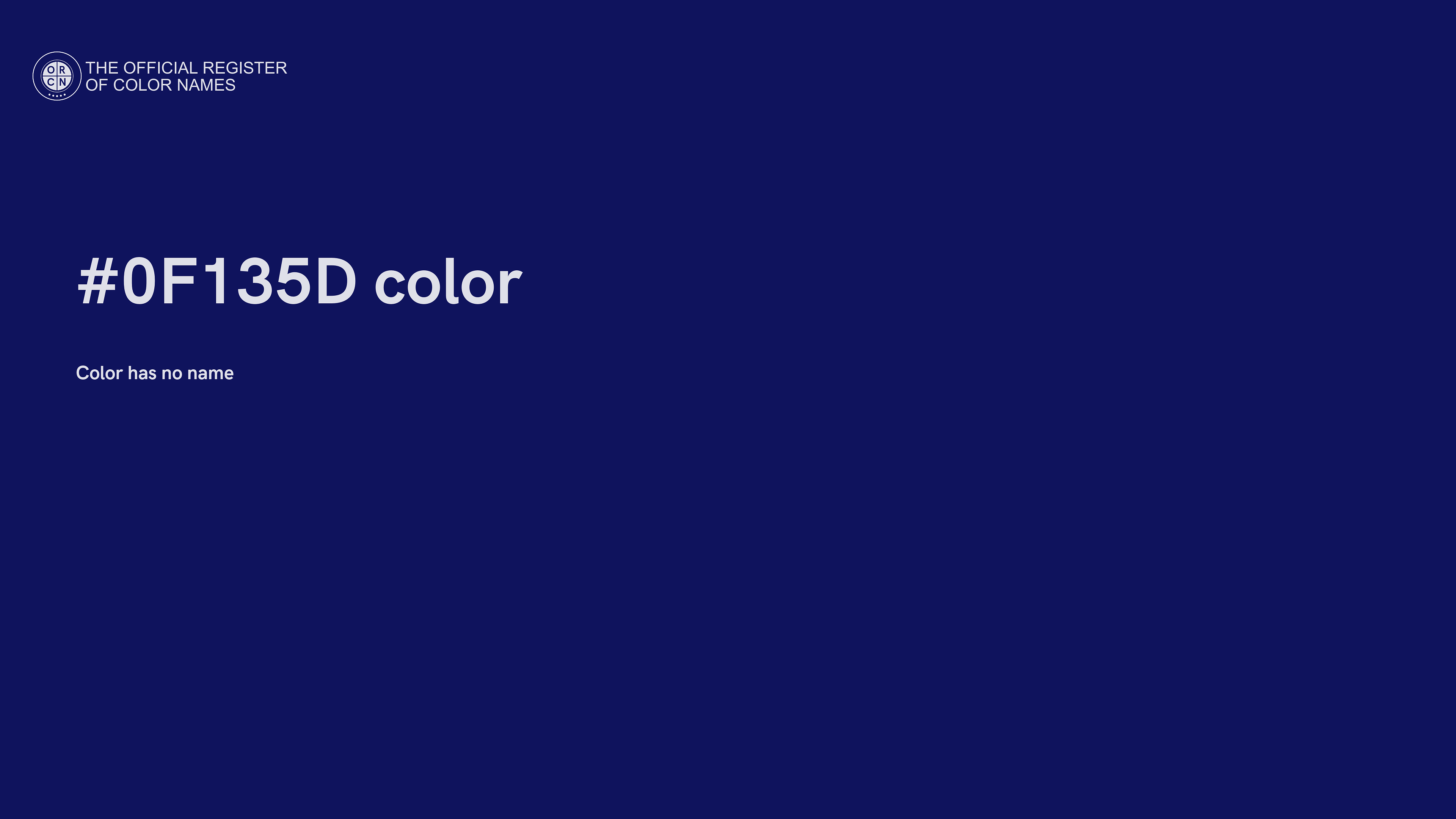 The digital color HEX #0F135D belongs to the Blue Color Family featuring High Saturation (Saturation Family) and Dark (Brightness Family).