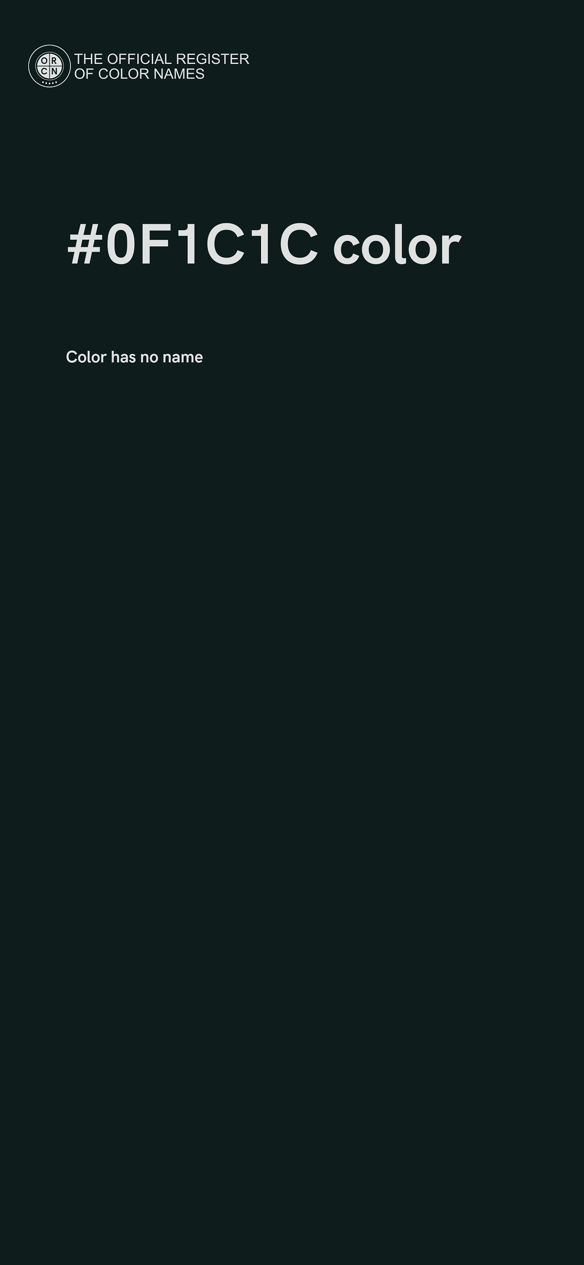 The digital color HEX #0F1C1C belongs to the Cyan Color Family featuring Mild Saturation (Saturation Family) and Very Dark (Brightness Family).