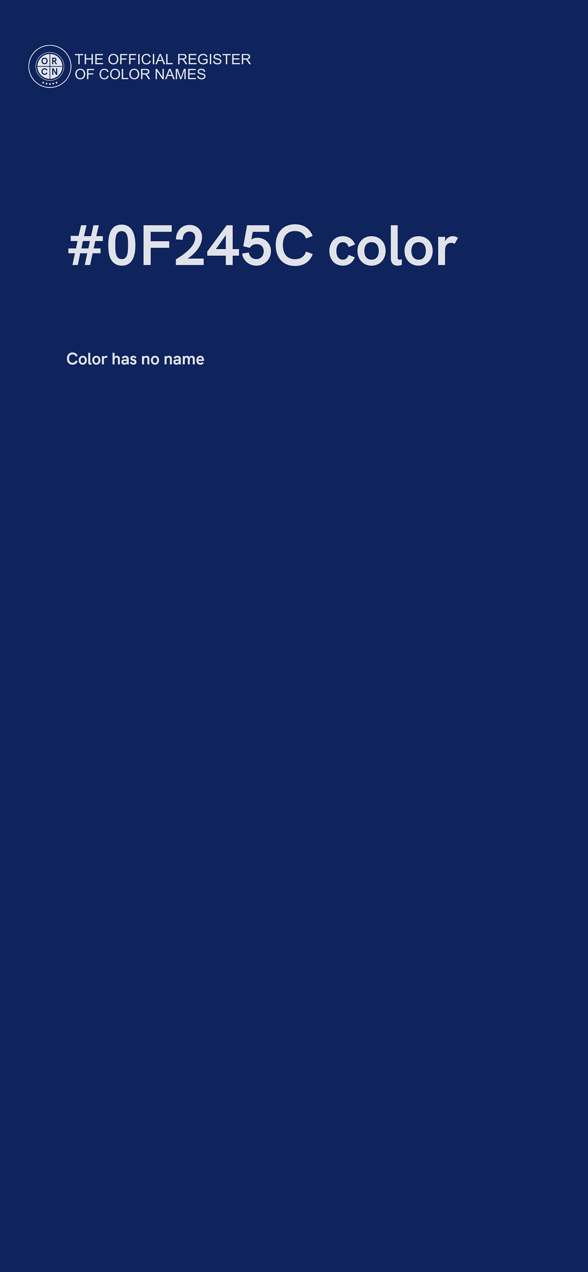 The digital color HEX #0F245C belongs to the Azure Color Family featuring High Saturation (Saturation Family) and Dark (Brightness Family).