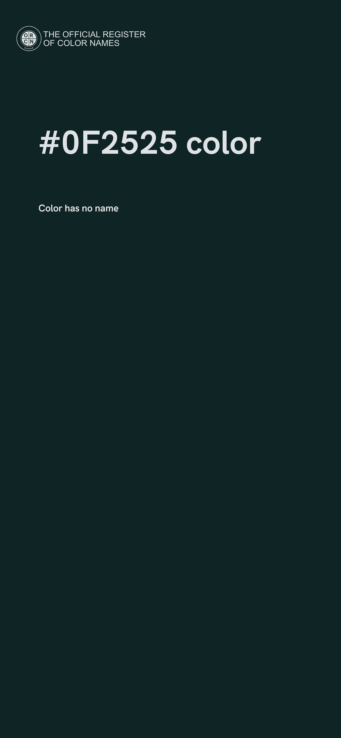 The digital color HEX #0F2525 belongs to the Cyan Color Family featuring Moderate Saturation (Saturation Family) and Dark (Brightness Family).