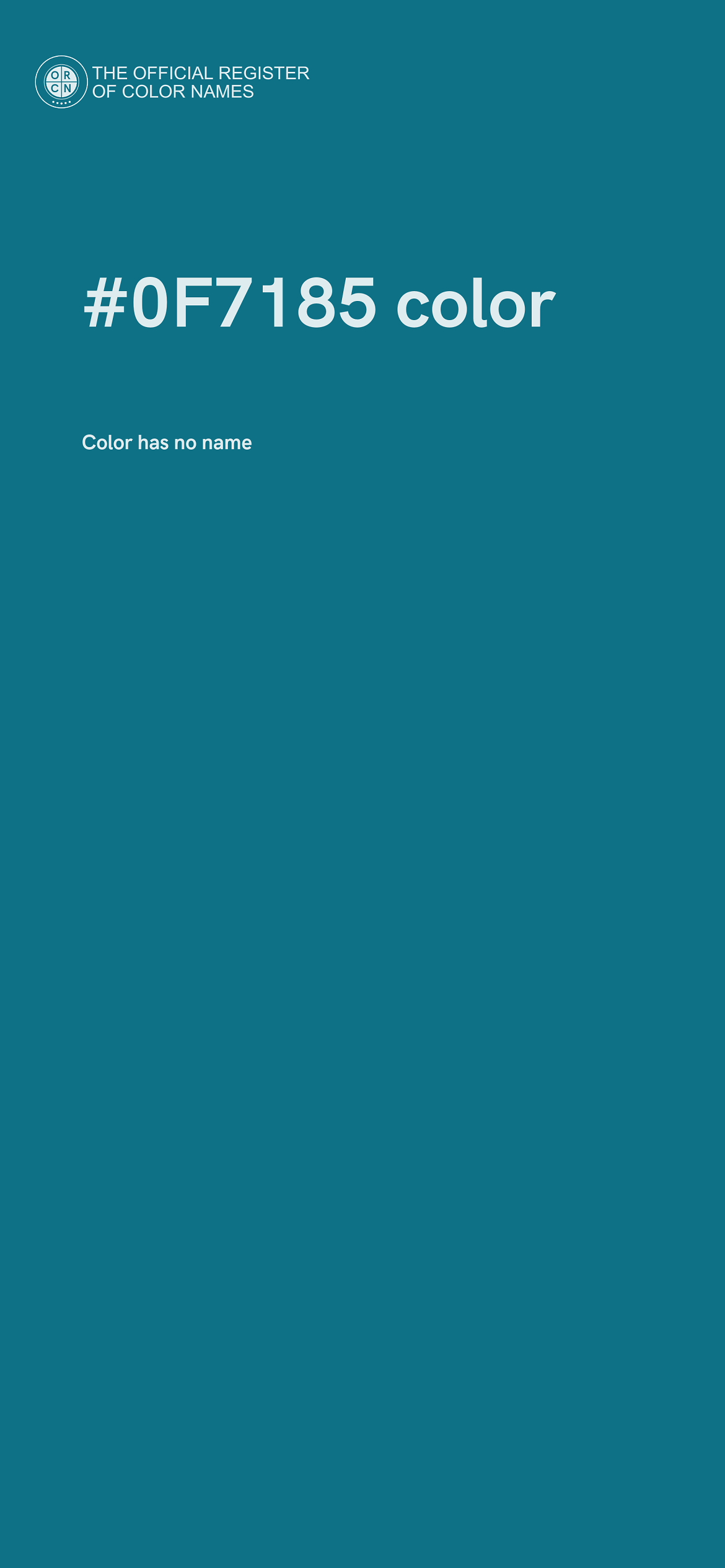 The digital color HEX #0F7185 belongs to the Cyan Color Family featuring High Saturation (Saturation Family) and Neutral (Brightness Family).