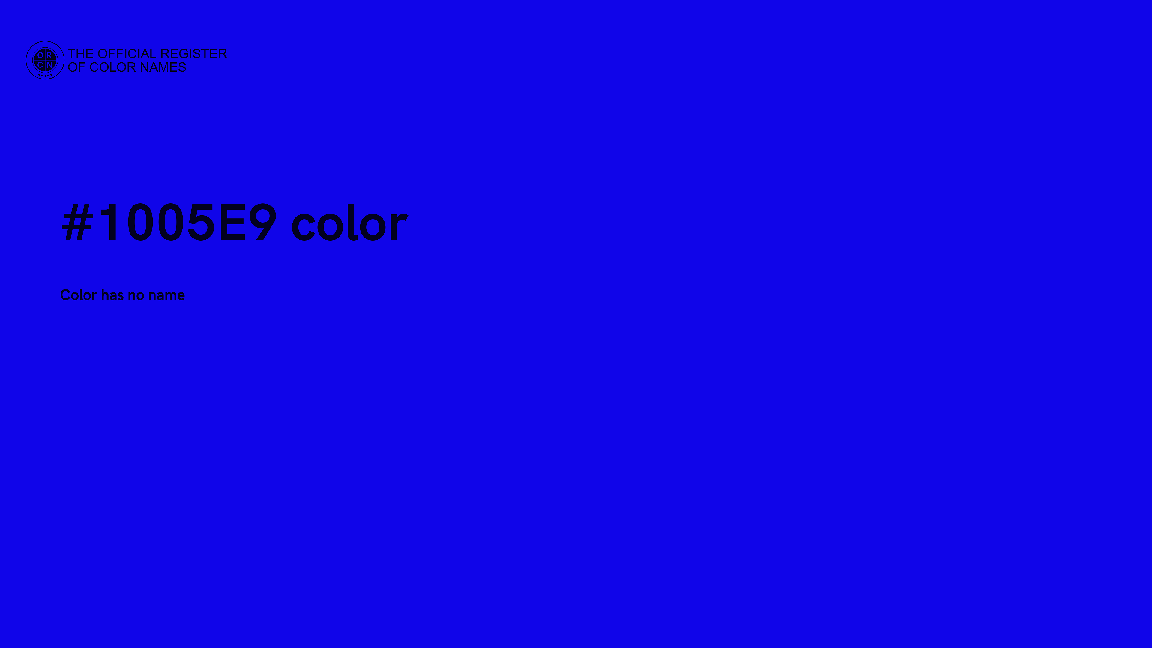 The digital color HEX #1005E9 belongs to the Blue Color Family featuring Full Saturation (Saturation Family) and Light (Brightness Family).