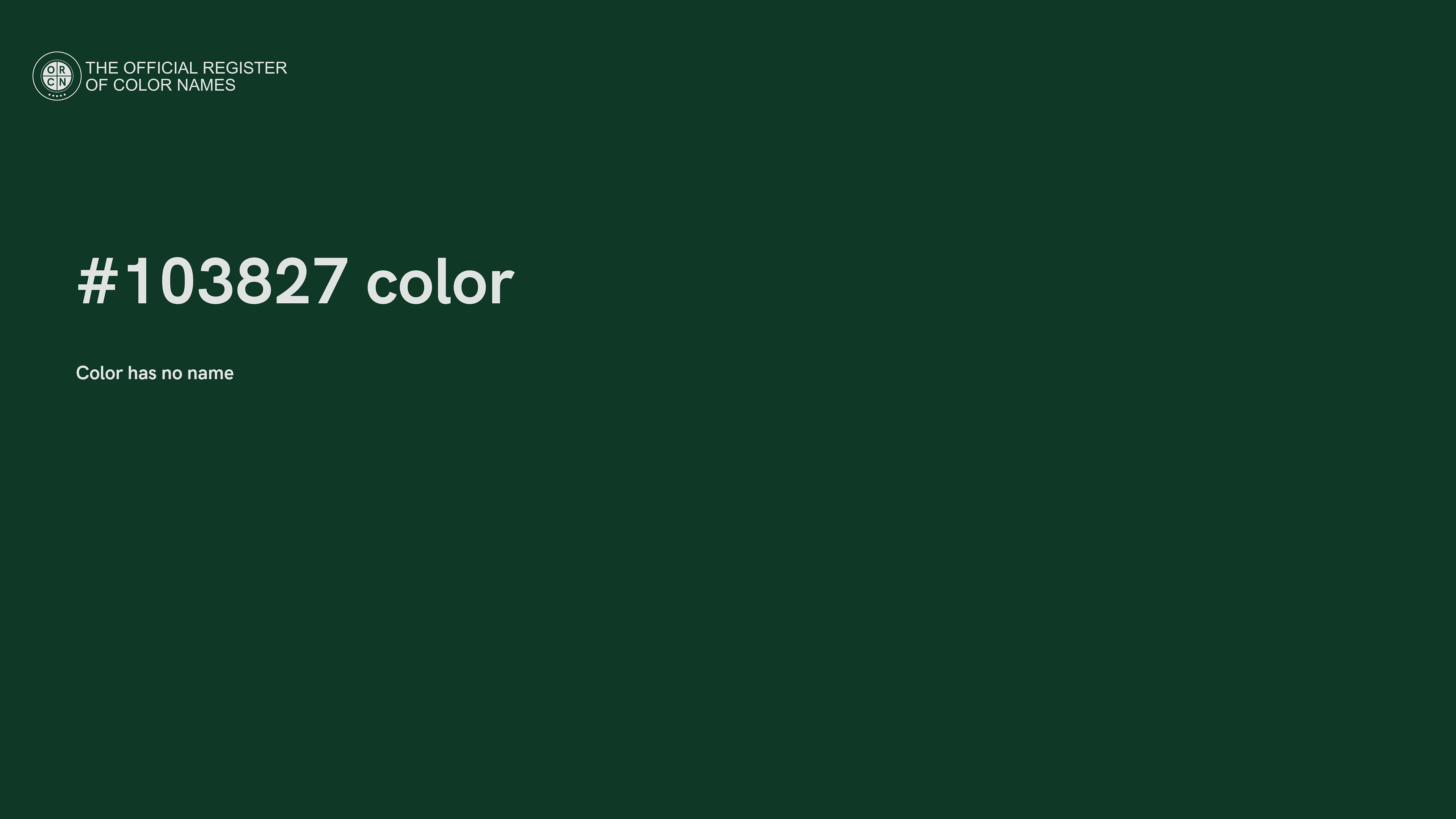 For printing in non digital world, #103827 is represented in CMYK as 16 Cyan, 0 Magenta, 7 Yellow, and 78 Black (Key) (C:16 M:0 Y:7 K:78).