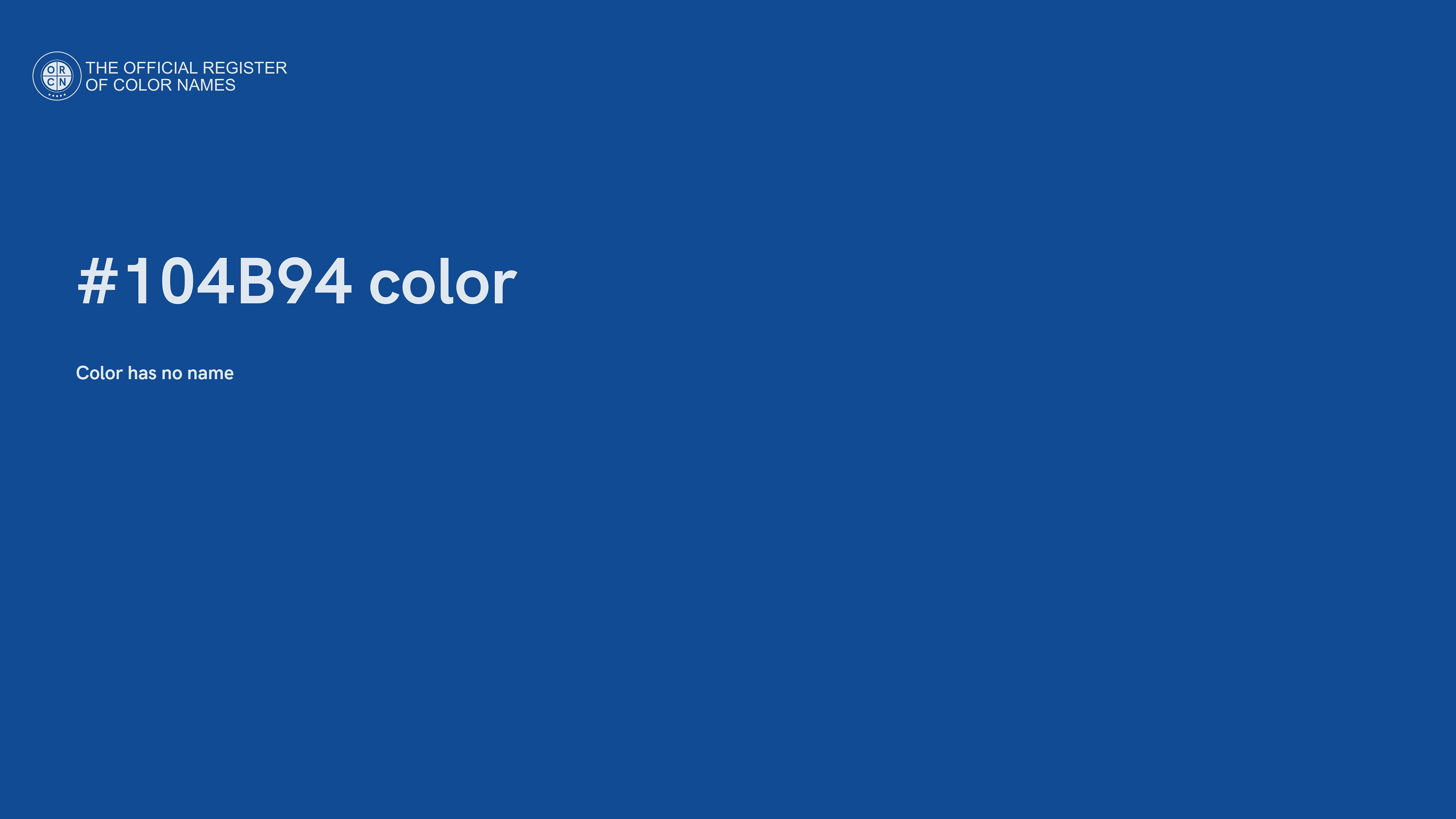 The digital color HEX #104B94 belongs to the Azure Color Family featuring High Saturation (Saturation Family) and Neutral (Brightness Family).