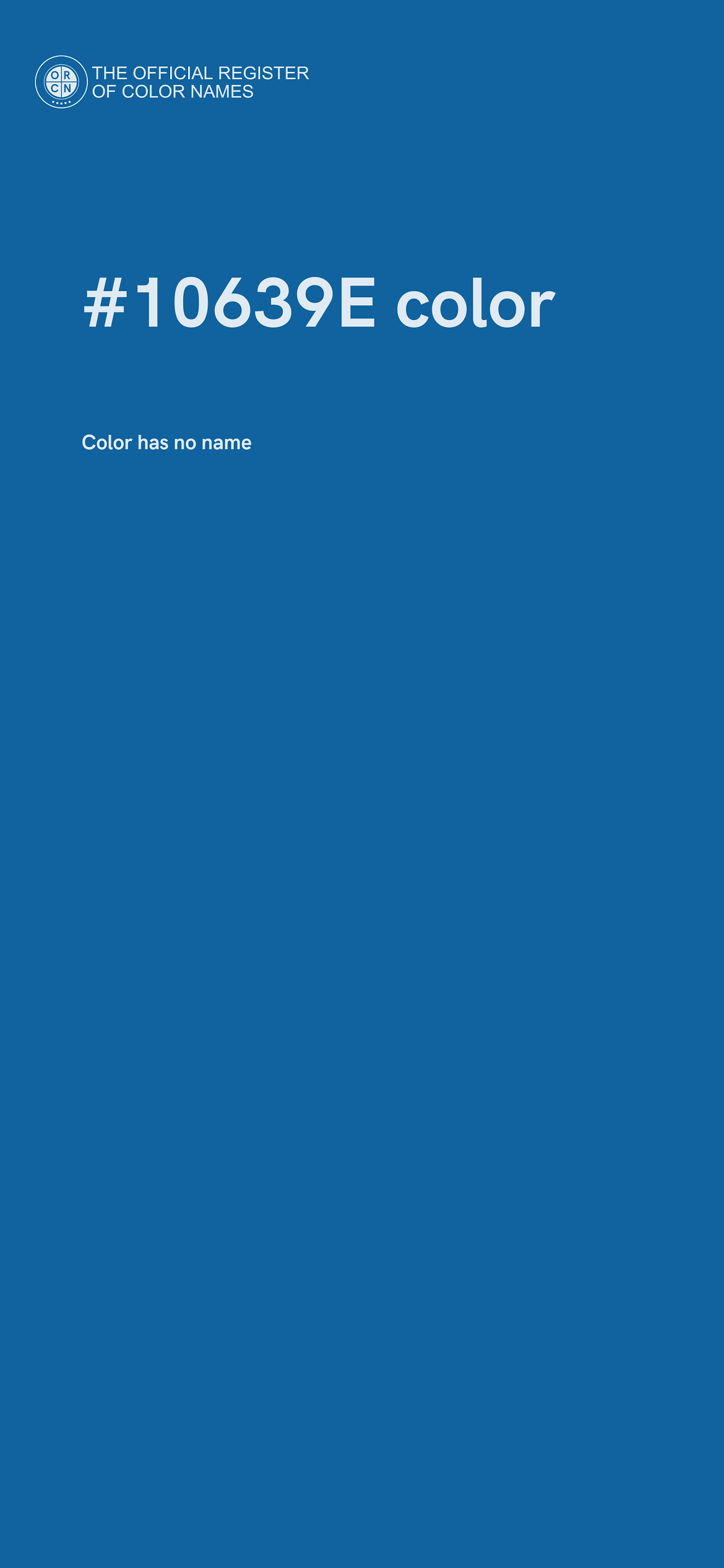 The digital color HEX #10639E belongs to the Azure Color Family featuring High Saturation (Saturation Family) and Neutral (Brightness Family).