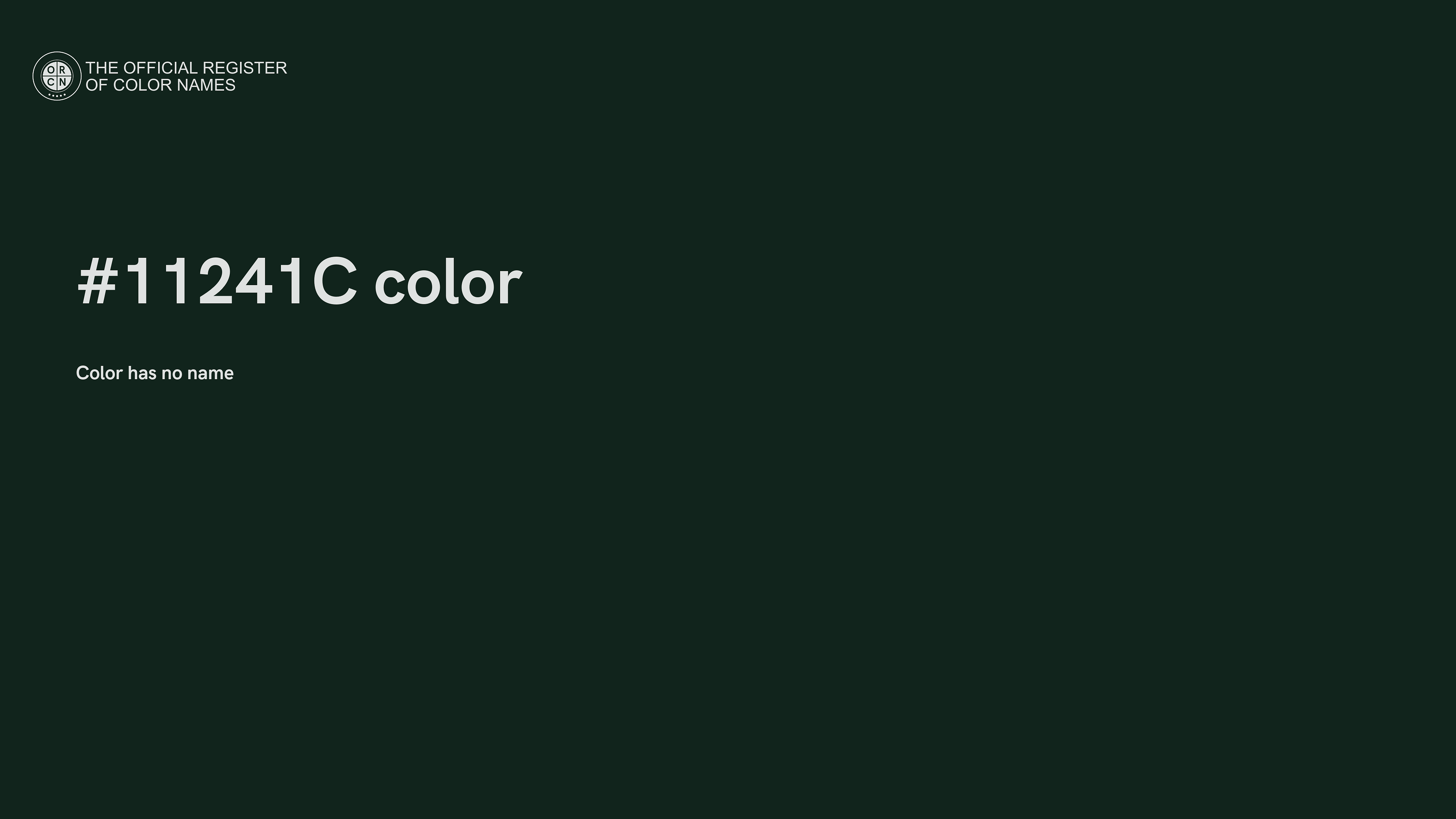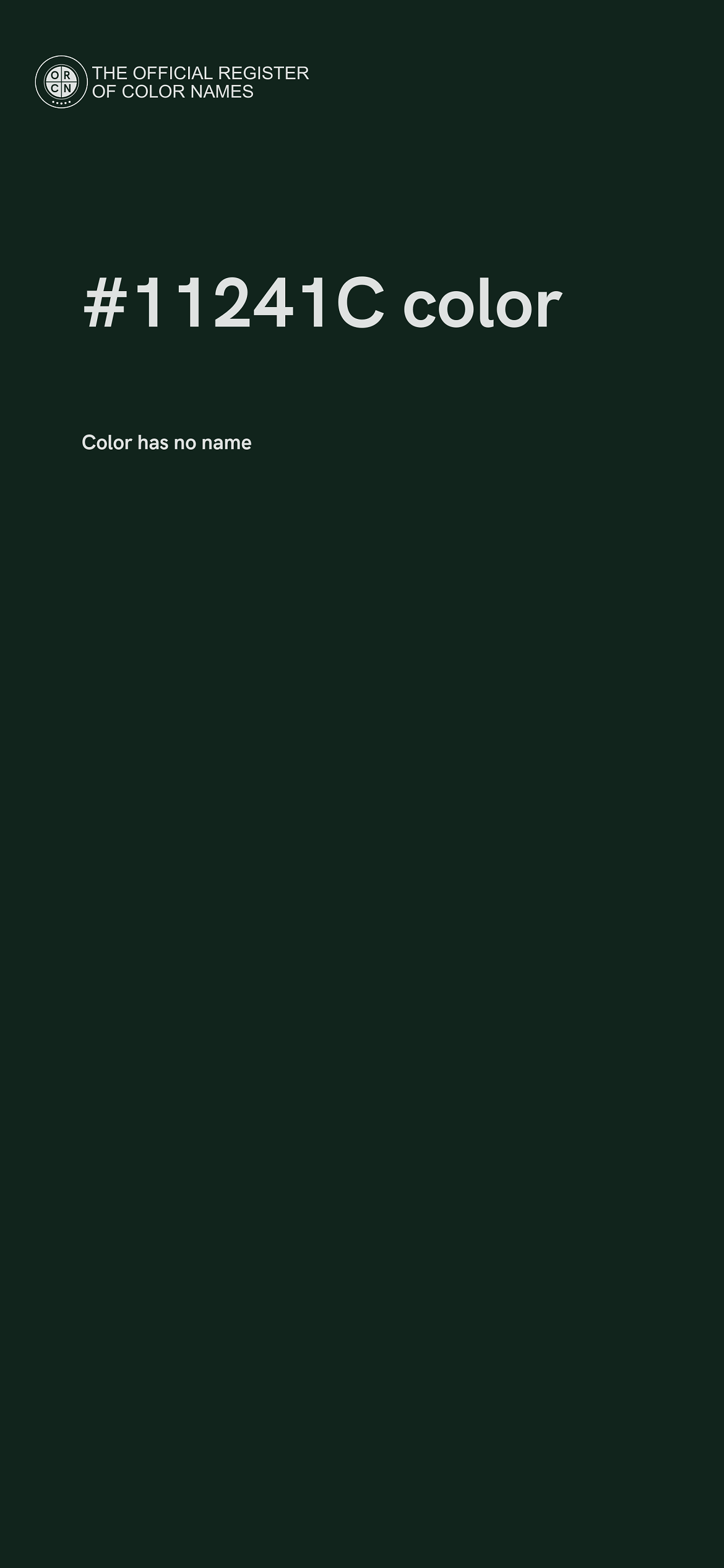The digital color HEX #11241C belongs to the Spring Green Color Family featuring Mild Saturation (Saturation Family) and Dark (Brightness Family).