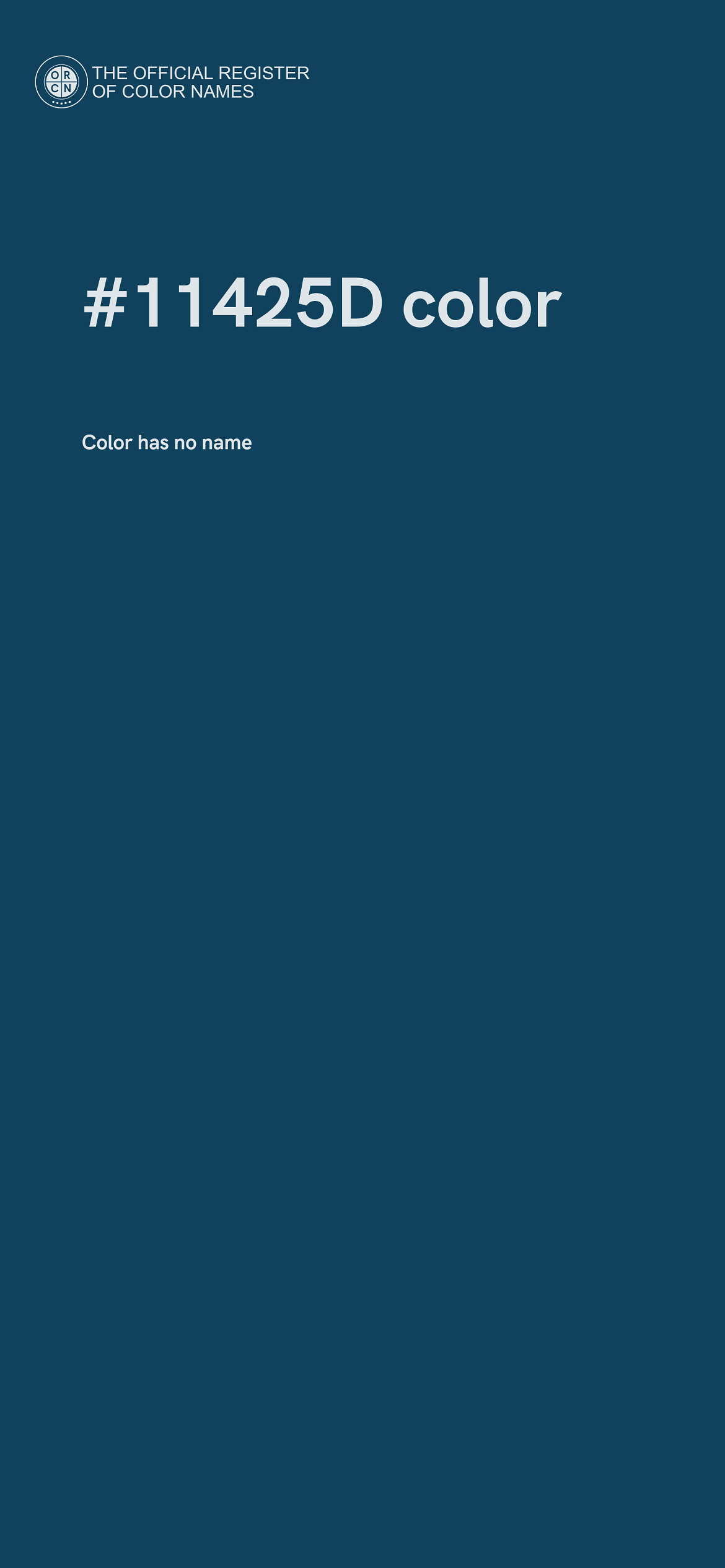 The digital color HEX #11425D belongs to the Azure Color Family featuring High Saturation (Saturation Family) and Dark (Brightness Family).