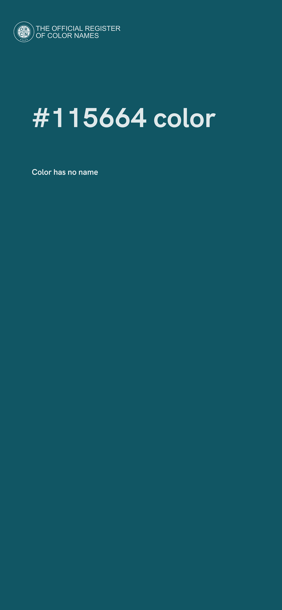 For printing in non digital world, #115664 is represented in CMYK as 33 Cyan, 5 Magenta, 0 Yellow, and 61 Black (Key) (C:33 M:5 Y:0 K:61).