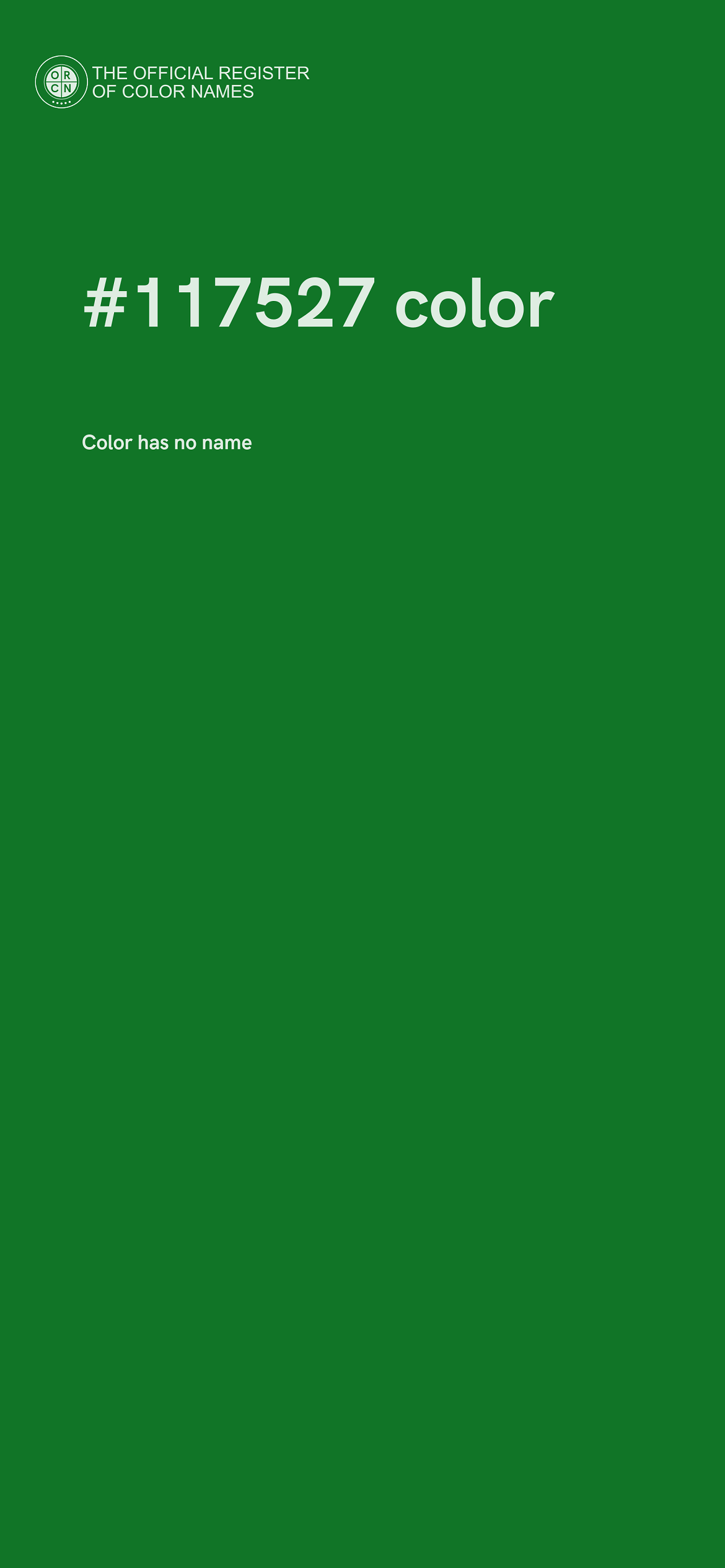 The digital color HEX #117527 belongs to the Green Color Family featuring High Saturation (Saturation Family) and Neutral (Brightness Family).