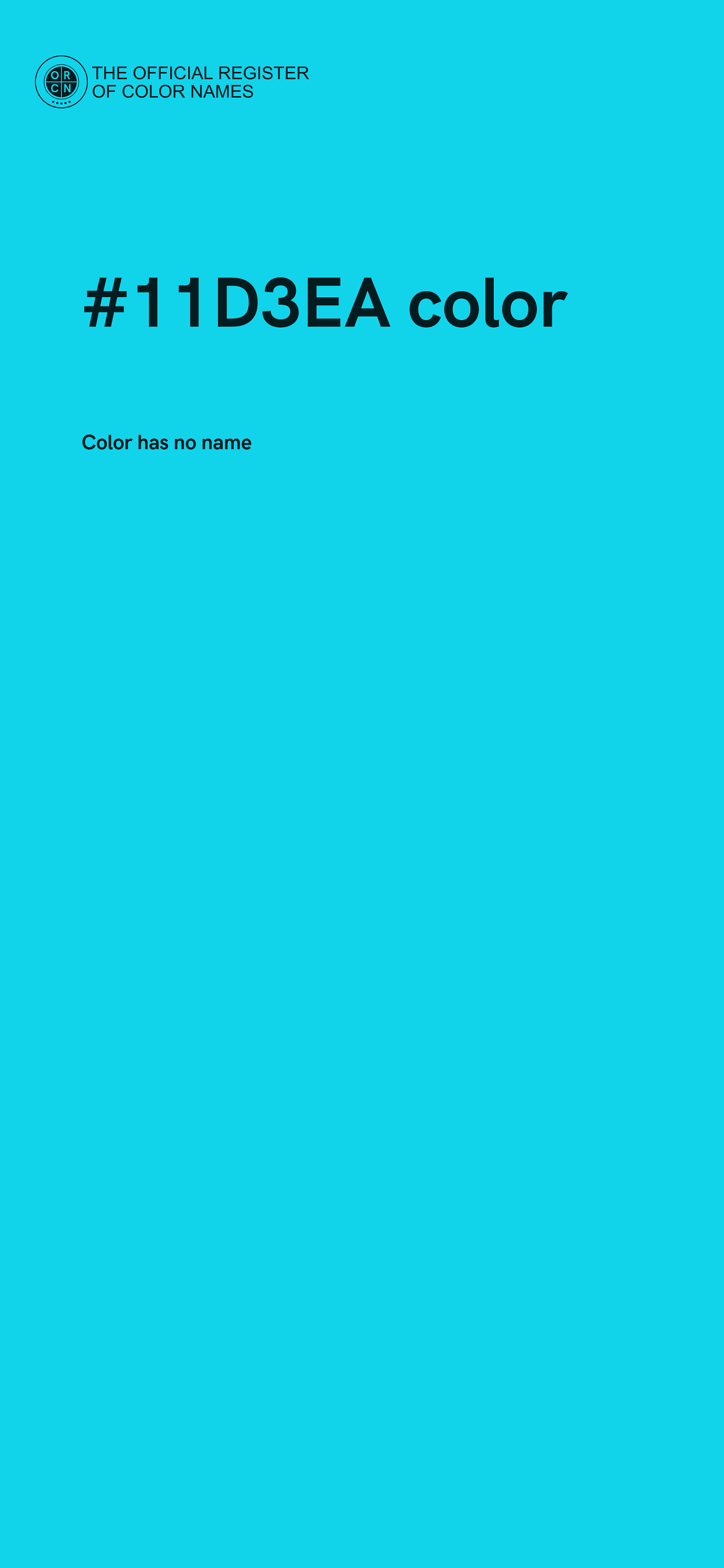 The digital color HEX #11D3EA belongs to the Cyan Color Family featuring Full Saturation (Saturation Family) and Light (Brightness Family).