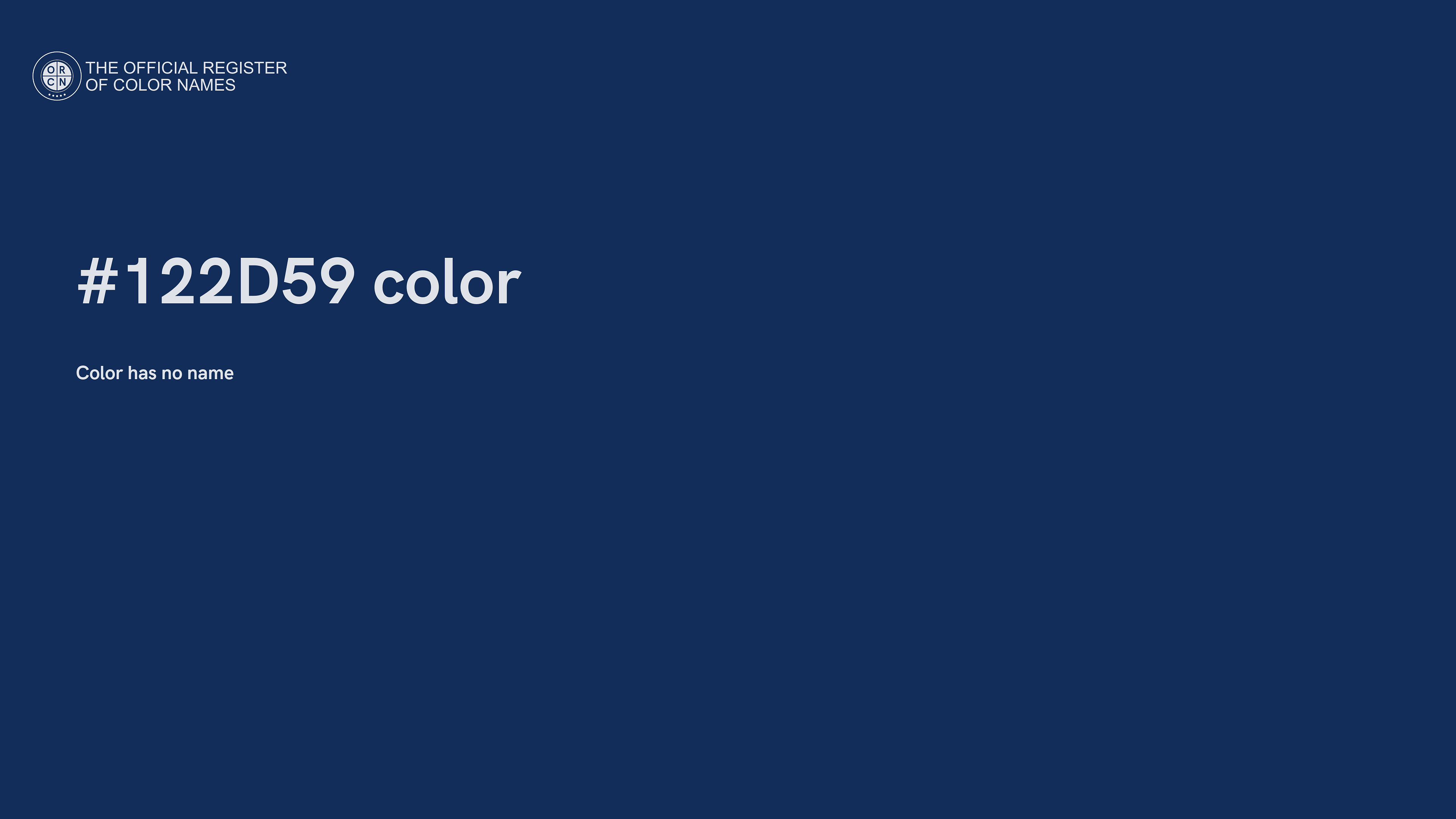 The digital color HEX #122D59 belongs to the Azure Color Family featuring High Saturation (Saturation Family) and Dark (Brightness Family).